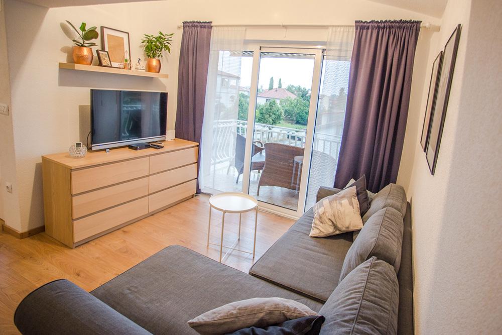 Lejligheden ligger ved indgangen til Pakostane, der ligger på husets anden sal. Det har tre værelser med to badeværelser og en terrasse. Stranden og centrum ligger 10 minutters gang derfra.