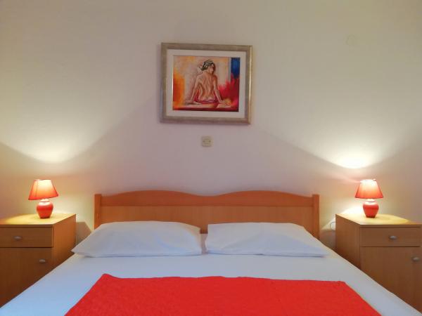 Moderne udstyret lejligheder i turistområdet Pakoštan. Lejlighederne ligger 5-10 minutters gang fra strandene og bymidten. Der er supermarked og sportspladser i nærheden af lejligheden Ejendommen er beliggende på et areal på 1600 m2 med anlagt gårdhave og parkeringspladser og grill til gæster. Alle lejligheder har sengelinned og håndklæder til gæster. Køkkenet er udstyret med alt nødvendigt køkkenudstyr. Der er et strygebræt i hovedsalen. Turistskat, aircondition og WiFi er inkluderet i prisen. Kæledyr er velkomne. Prisen for kæledyr er 5 Eur/Dag. Check ind fra kl. Check ud kl. 10.00.