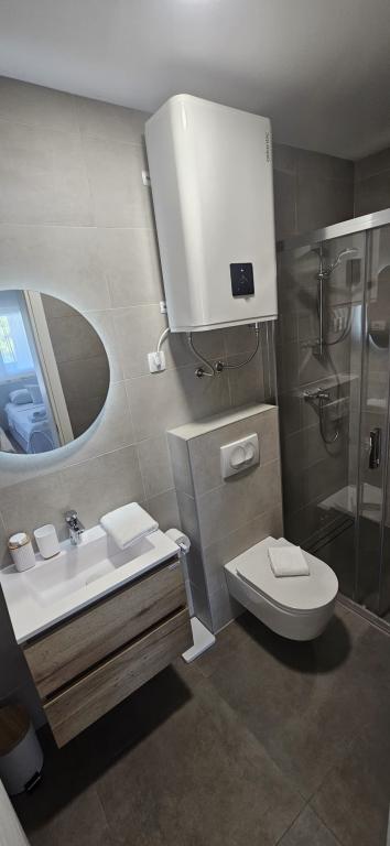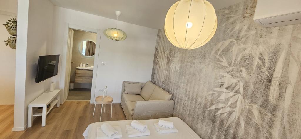 Opholdt sig i AP2+1 i stueetagen. Valget af denne bolig skyldes i høj grad fru Lana, som var så venlig og hjertelig under min henvendelse over telefonen, at vi ikke ledte længere. Lejligheden er nøjagtig som vist på billederne, uden skjulte fejl, pæn og ren, og veludstyret til et behageligt ophold. Sengen er behagelig, og der er en madraspude på sofaen, som er nok til, at en voksen kan sove. Værten Patrick er afslappet og altid tilgængelig, han sørger for, at du føler dig velkommen. Placeringen kunne ikke være bedre, stranden 1 minut eller 5 minutter afhængigt af hvor du vil svømme, centrum 5 minutter. Disse værter og deres lejligheder kan tjene som et eksempel på, hvordan man gør forretninger i privat turisme, hvis du allerede betaler noget, får du virkelig noget for de penge. Stor anbefaling til alle.
