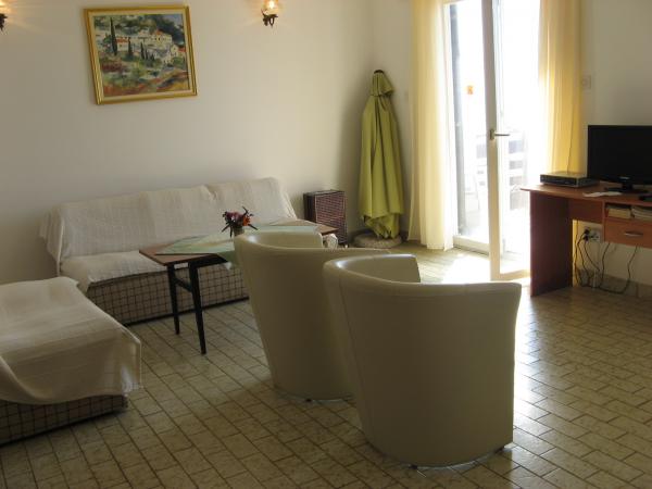 Læs mere IndkvarteringsenhederVed reservation af tid betaler gæsten et forudbetaling på 100 EUR pr. lejlighed. Efter modtagelse af forudbetalingen anses lejligheden for reserveret til den ønskede dato. Gæsten betaler resten af pengene ved indrejse i lejligheden. Ankomsttiden er efter kl. 14.00, og afgangstiden er indtil kl. 9.00. Lejlighed A4 1 - tillæg for den femte person er 10 EUR/nat. Brugen af aircondition er 5 EUR/nat.
