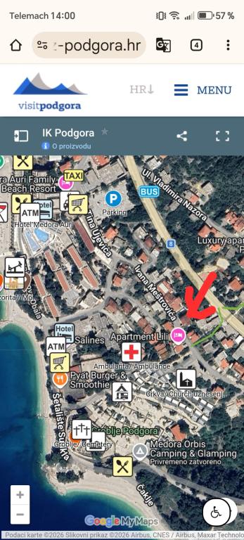 Vi krydsede næsten hele Kroatien, indtil vi ankrede op i Podgora, hvilket passer os på grund af dets beliggenhed og landsbyens størrelse. Vi prøvede både hoteller og privat indkvartering, indtil vi stødte på dette lejlighedshus i Jure. Vi har været der ti gange i år. Vi blev indkvarteret i 2+2, 2+1 og i et studio til to, hvor der er mulighed for en ekstra seng til et barn. Lejlighederne er fuldt udstyrede, vi manglede ikke noget, der er endda en vaskemaskine til rådighed, hvilket ikke er standard alle steder. Ejeren og hans familie er seje... de vil rådgive og hjælpe. Jeg anbefaler at prøve