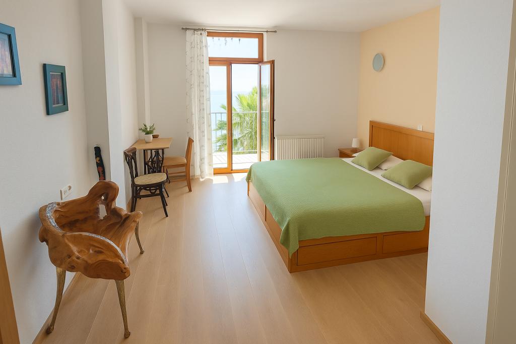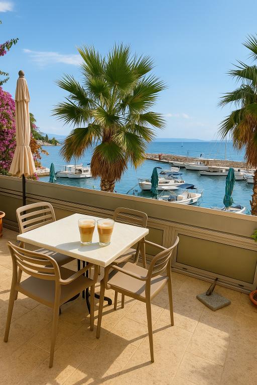 Vi tilbragte 10 dejlige dage i AP. nr. 3 i september. Vi havde perfekt havudsigt. Vi plejede at spise morgenmad eller aftensdrink på vores terrasse og se folk i marina og natteliv. Bageri, købmand, pizzeria med morgenmad er nedenunder. Møbler er stor - rummelig garderobe, bred og komfortabel seng i soveværelset. Smukke materialer som træ og sten anvendes. Få dekorative elementer gør det hyggeligt og dejligt. Køkkenet er udstyret godt nok, at lave mad selv. Ap. har lille baghave balkon - perfekte løsninger til tørring af håndklæder mv. Podgora var peacuful men fyldt med attraktioner - alle former for bådture, barer med livemusik, sæt af restauranter og flotte stenstrande i gåafstand. Parkeringsplads findes i kort afstand fra lejligheden - det har let adgang - så vigtigt i Kroatien! Vi kunne ikke være mere tilfredse med vores valg og ser frem til at komme tilbage.