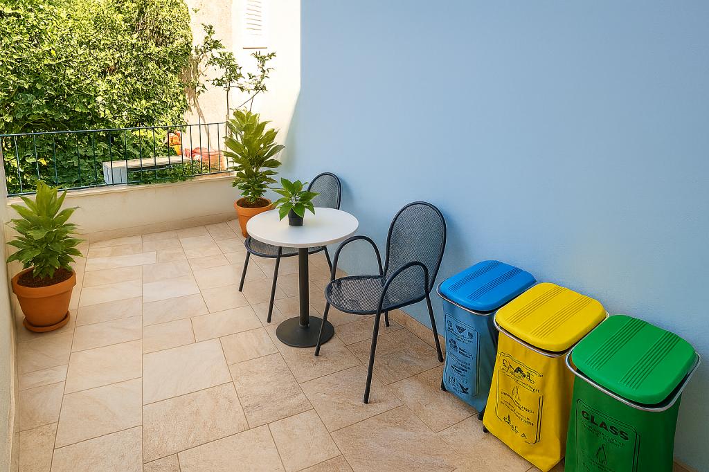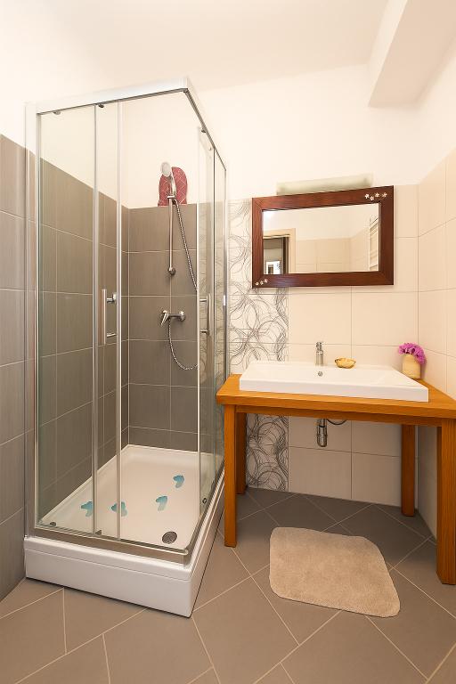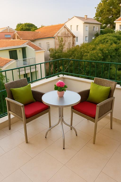 Vi har brugt første uge af juli er der, Lejlighed 1 i første sal, par med tre år gamle søn. Lejligheden er virkelig spacy for alt det rod, du kan forvente med lille barn. Herunder alle dens legetøj og ejendele. Fantastisk er balkon, fordi det er meget mere større end du se det på fotografier. Ikke kun plads til bord og stole til fire personer, men masser af plads til nice enorme parasol og for børn at lege ... selv med lille cykel. Cafe nedenfor er ikke støjende og dørene i lejligheden er perfekt silentproof. A / C fungerer godt i soveværelse, bad altid med varmt vand, WiFi er stærk nok efter videoer fra You Tube. Bageri er lige ved siden af, så du kan få frisk brød, rundstykker eller kager hver morgen bare 10m væk fra din lejlighed. Det eneste problem er parkering sted, men familien af ejere er meget rart og hjælpsomme også på denne, så du vil få gratis parkering, måske i det fjerne, men de vil arrangere det. Køkkenet er veludstyret. TV fungerer godt, men kun lokale kanaler. Vi ved hjælp af wifi og youtube for et barn, eller hvis musik var nødvendig.