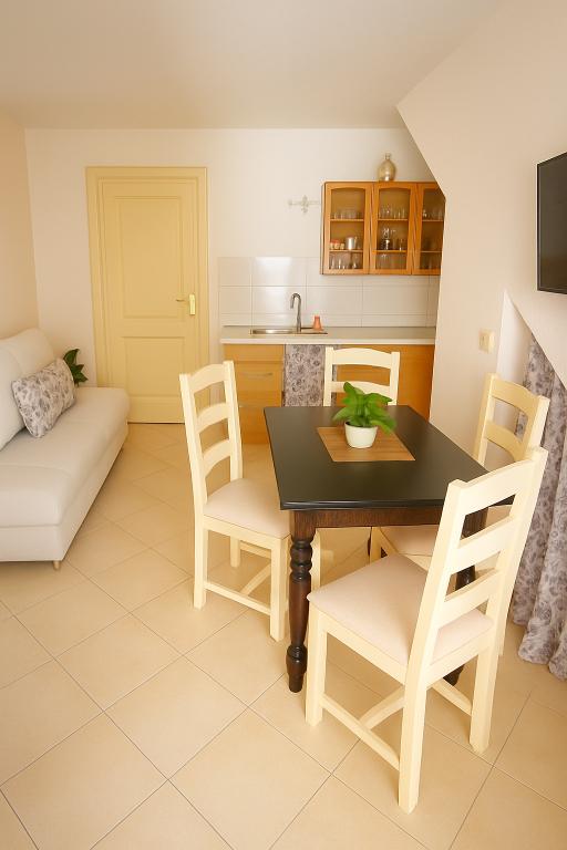 Turistskat er inkluderet i prisen.Fru Dana er en temmelig upålidelig vært. Jeg bookede en lejlighed den 6. juni til den 25. juni, vi blev enige om alt, og den 21. juni, dagen før vi tog afsted (fra den 22. til den 25. juni boede min familie og jeg i Makarska med vores 1-årige barn), kommunikerede vi om en barneseng og højstol, og hun skrev til mig, at alt dette var i lejligheden, og at vi ville ses den 25. juni, og hun tilbød mig endda en lejlighed, så vi kunne ankomme tidligere. Så den 22. juni omkring middagstid sendte hun mig en e-mail (vi var allerede på vej til Makarska med vores 1-årige barn) for at annullere reservationen, fordi andre gæster var ankommet. Jeg var fuldstændig chokeret over, at man kunne gøre forretninger på den måde. Da jeg ringede til hende og fortalte hende, at vi ikke havde noget sted at bo den 25. juni og havde rejst 600 km, sagde hun, at hun ville forsøge at finde en anden lejlighed. Hun sendte mig telefonnummeret på en dame fra Makarska, hvis lejlighed lå 300 m eller mere fra havet, på en bakke og på 3. sal. Jeg takkede hende pænt og fandt selv en lejlighed i Podgora, ret tæt på hendes. Jeg advarer dig om hendes letsindighed.