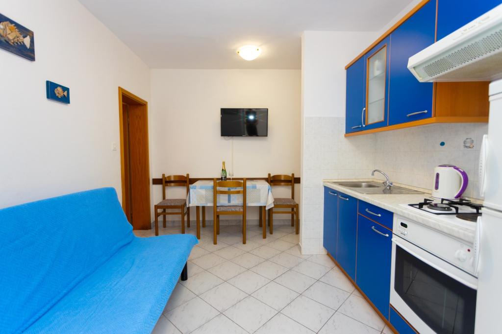 Apartments Vranješ er centralt beliggende i Podgora, i umiddelbar nærhed af købmandsforretninger, restauranter og barer. Bygningen byder på udsigt over den gamle havn, og gæsterne har gratis trådløs internetadgang og gratis parkering. Der er 2 strande kun 2 minutters gang fra ejendommen. Alle lejligheder er møblerede og har aircondition og omfatter LCD-tv, eget badeværelse og køkken samt balkoner og rummelige terrasser. Gæsterne kan benytte grillen i gården. Faciliteter til vandsport, parasailing og dykning er tilgængelige kun 100 meter fra bygningen. Det er 3 km til Tučep og 8 km til Makarska. Den nærmeste indgang til motorvejen ligger i nærheden af Zagvozd og ligger 30 minutters kørsel derfra