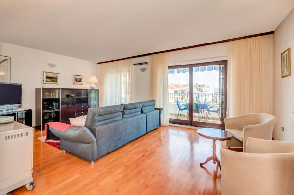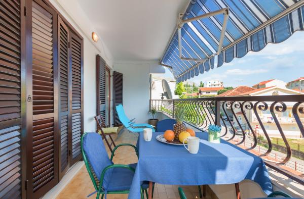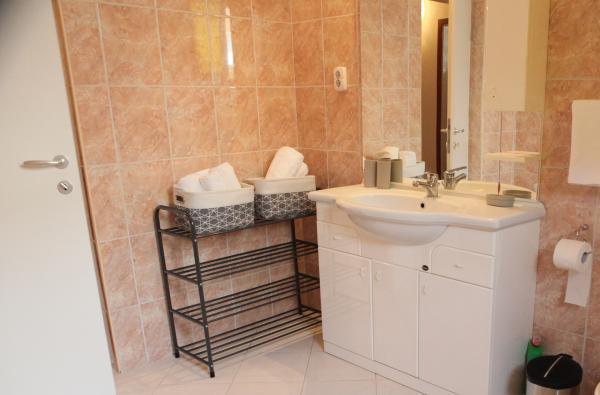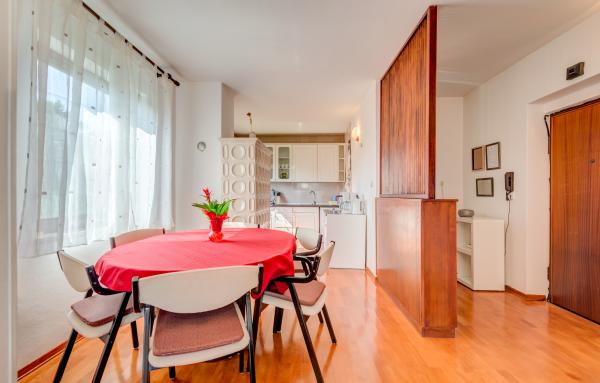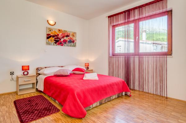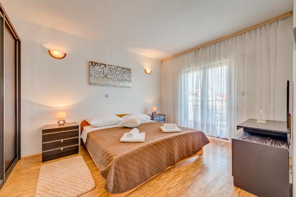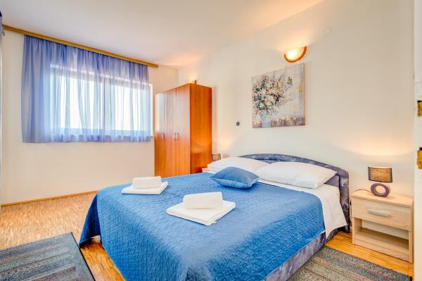 Denne smukke og komfortable lejlighed ligger i et roligt område i Podstrana, kun 400 meter fra stranden og 12 kilometer fra Split. I nærheden er der et stort antal restauranter og en butiks- og busstation med direkte forbindelse til Split. Denne to-etagers lejlighed er til seks personer, den har tre soveværelser (hver udstyret med en dobbeltseng), en stue med tv, et fuldt udstyret køkken med spiseplads og to badeværelser med bruser. Værelset har aircondition og gratis trådløs internetadgang samt privat parkering foran ejendommen.