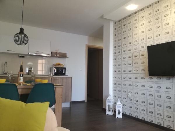Ferielejligheder Sucur ligger i Podstrana. Havet er en 5 minutters gang derfra, 200 meter. De har en smuk udsigt over havet, stranden, øer, byen Split. Nær lejligheden finder du et pizzeria, restauranter, butikker, caféer, bagerier og lignende. Også i umiddelbar nærhed af hotellet Le Meridien Lav. Meget nem at administrere. Med offentlig transport hver 30 minutter, og der er en mulighed, og at leje en bil eller få en taxa. Podstrana ligger 7 km fra byen Split. I Split er der mange attraktioner såsom Diocletians Palads kælder, park Marjan.