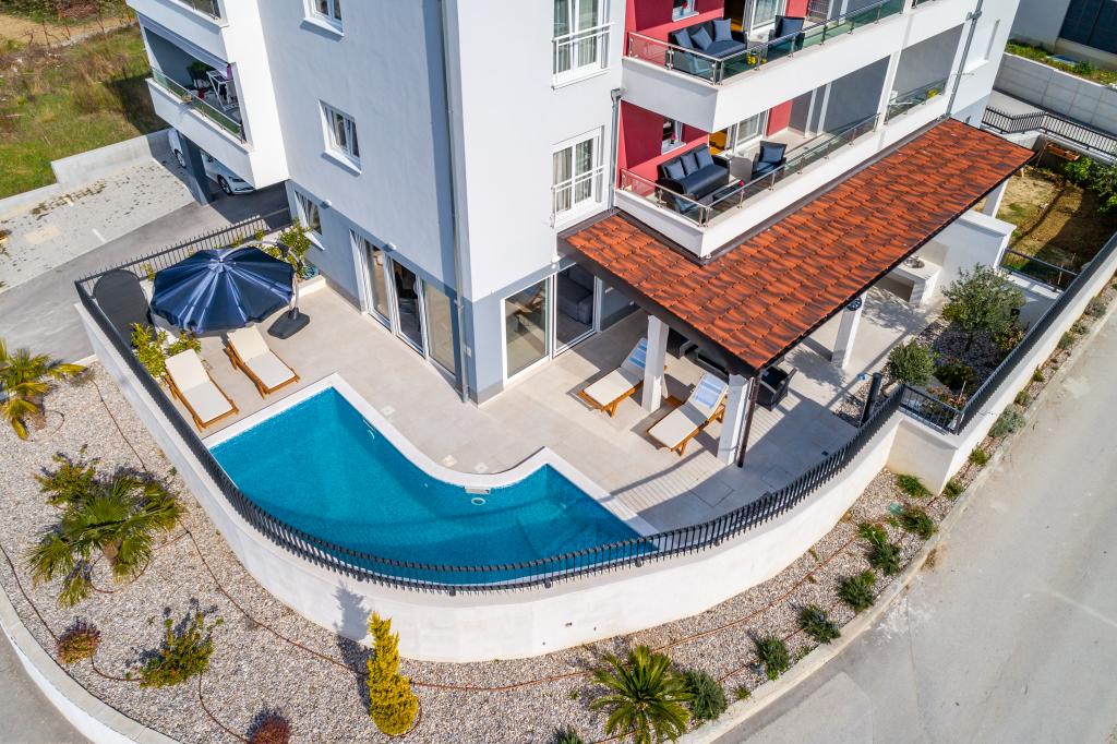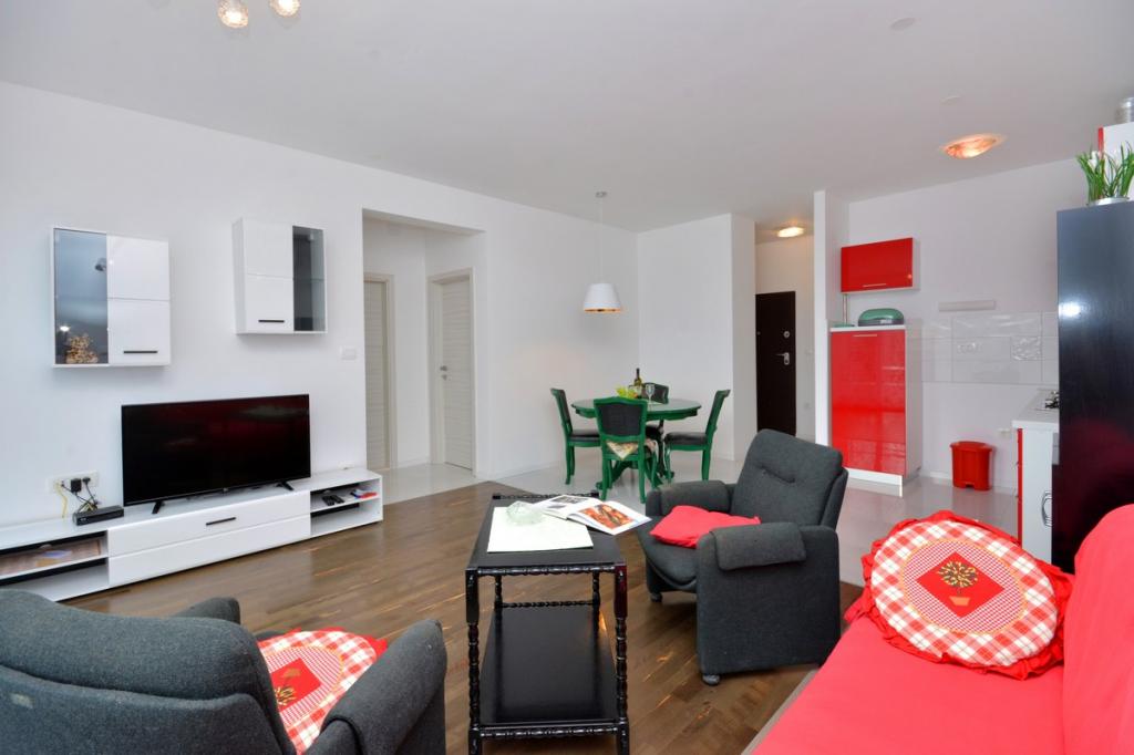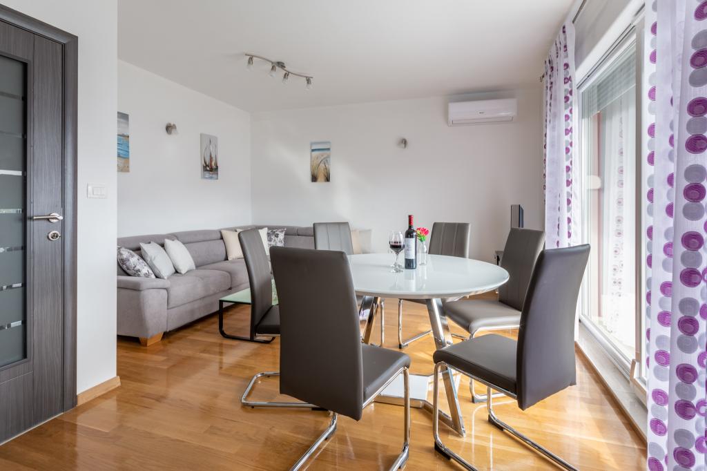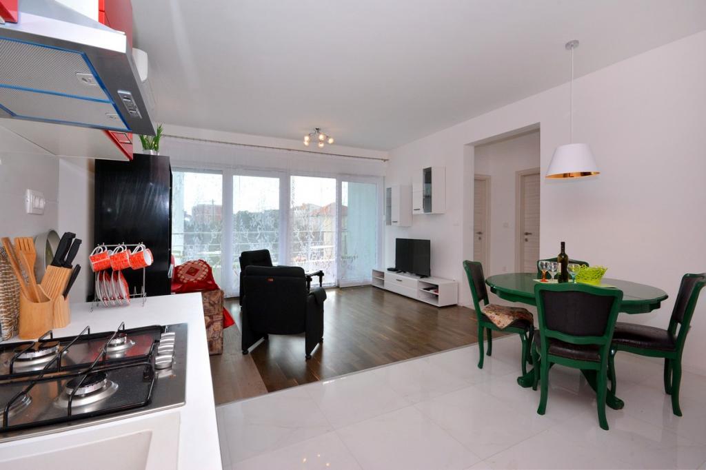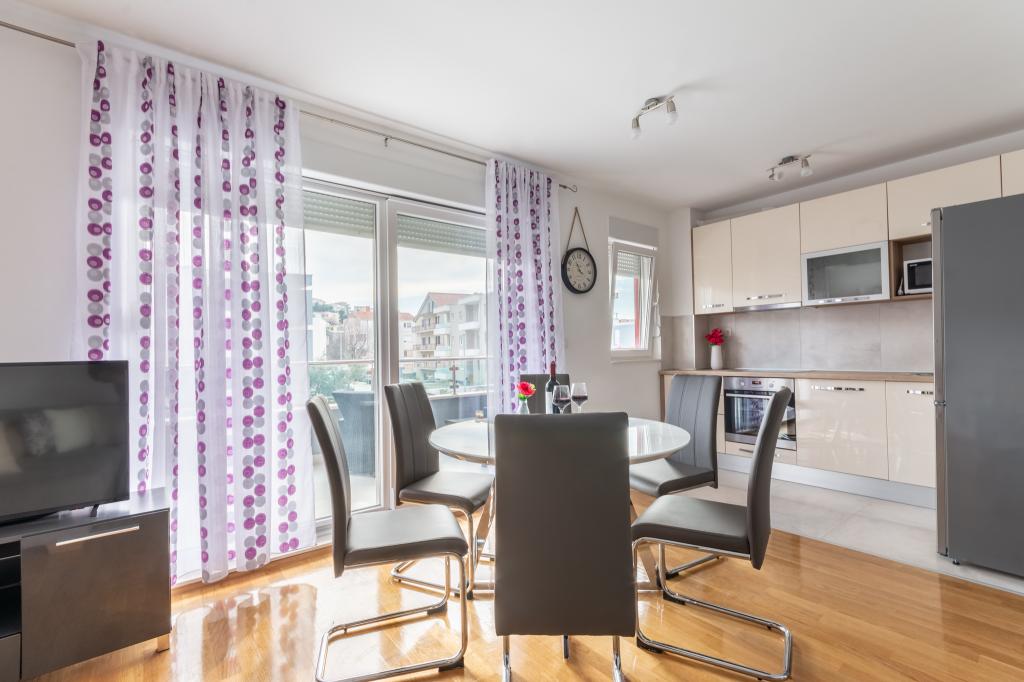 Fuldt moderne luksuriøst møbleret lejlighed i en rolig del af Podstrana, smukke lejlighed ligger i ny bygning med 2 soveværelser, stue, køkken, terrasse, tv-wi-fi, vaskemaskine, aircondition, tæt på stranden kun 70 mt, privat parkering. I nærheden er der en busstation, et marked, supermarkeder, barer, restauranter, fastfood og ens. Podstrana ligger i nærheden af byen Split kun 10 km.