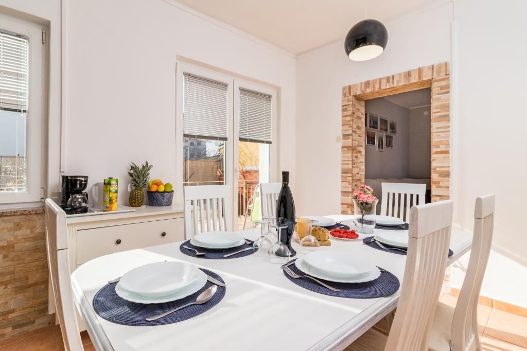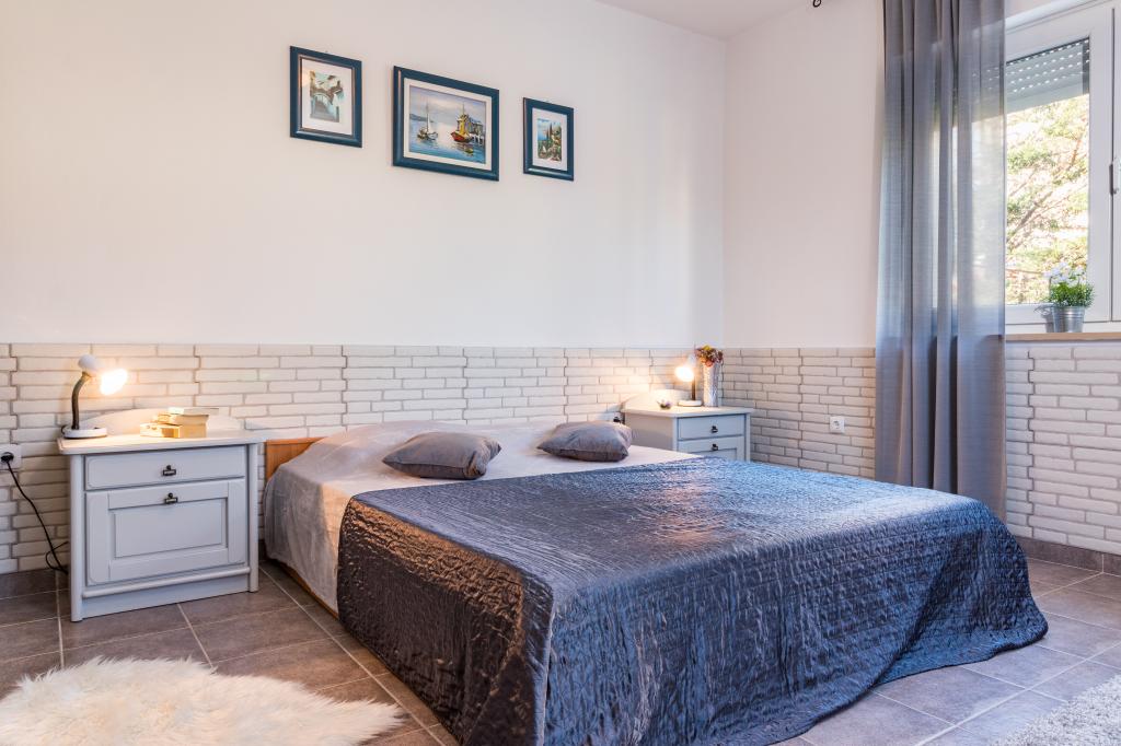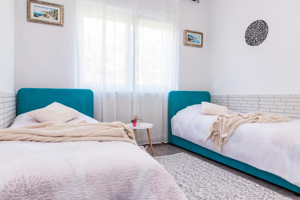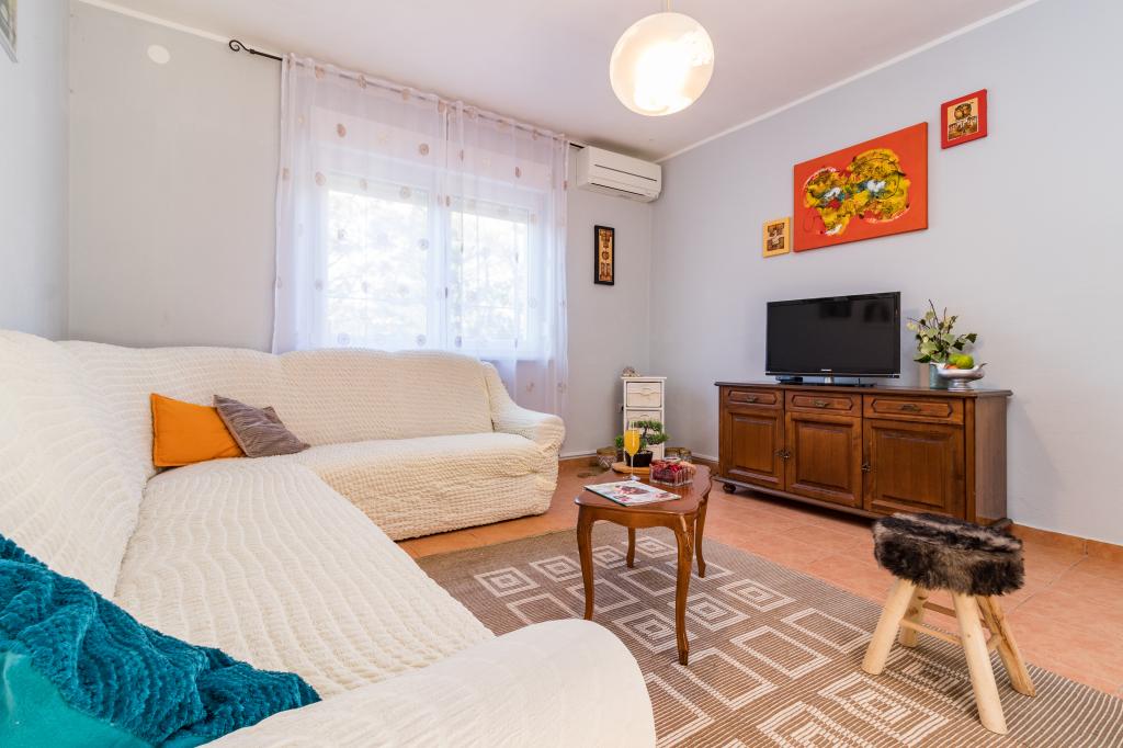 Sommerhus i Pomer, en lille landsby nær Medulin. Huset er omgivet af grønne områder, have er stor 600m, har to parkeringspladser, grill, terrasse, havemøbler. Det er 300 m fra havet og 500 m fra stranden. Huset er en stor 143 m2, har 3 soveværelser, stue, køkken, spisestue og to badeværelser. I Pomer har vi en tennisbane, en legeplads for fodbold, håndbold, basketball, park for børn, surf center, dykkercenter, fitness park. Stedet er beliggende ved havet, omgivet af fyrretræer. I off sæson tilbyder vi mulighed for at leje kun en del af huset som en studio lejlighed til to personer, og vi justere prisen.