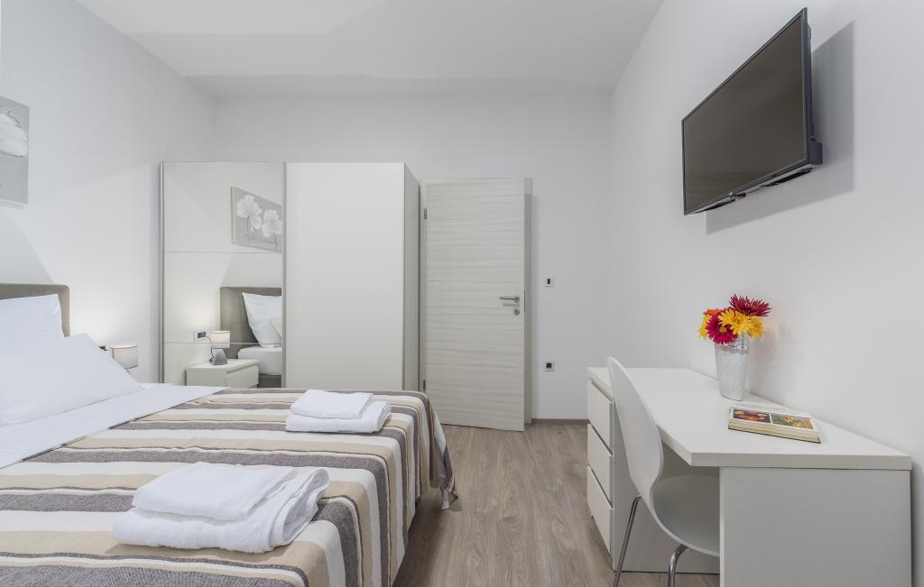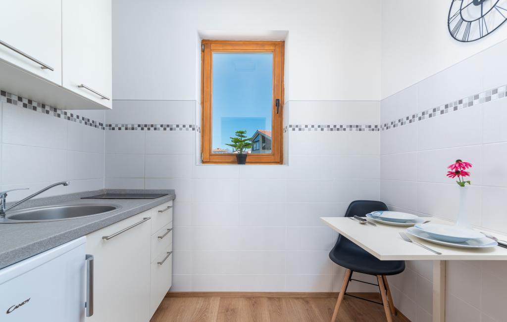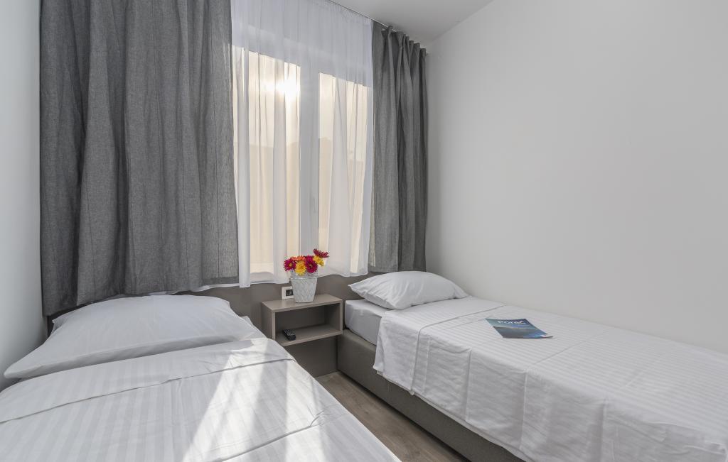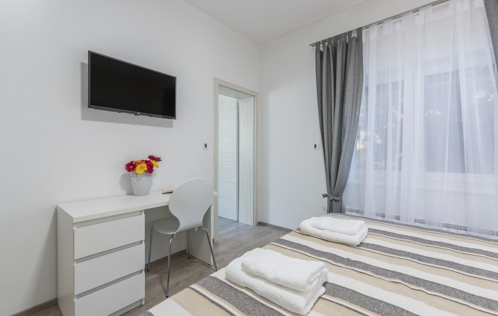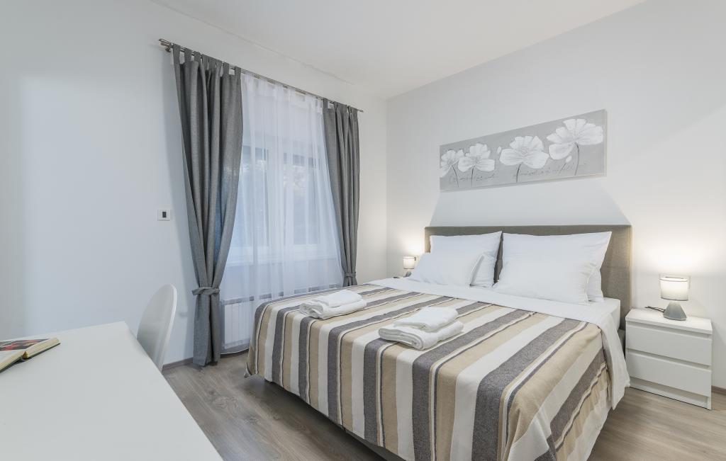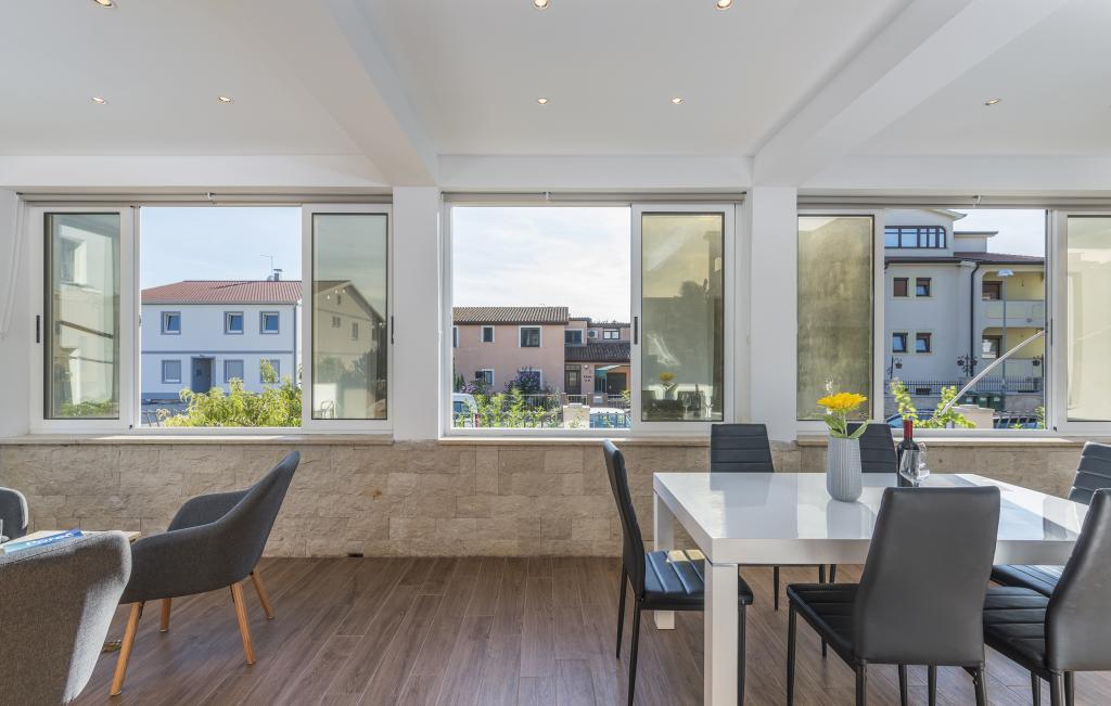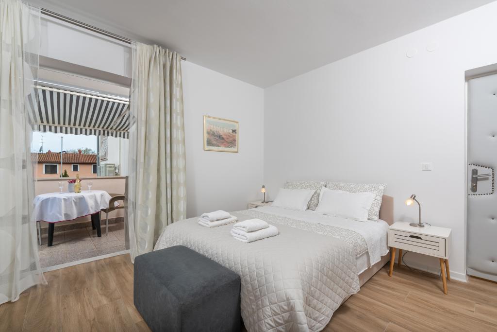Vores lejligheder ligger i et smukt og roligt boligområde, der tilbyder en perfekt tilflugt fra sommerens travlhed, men alligevel tæt på alt. En afslappet gåtur på 10-15 minutter bringer dig til den smukke Borik-strand eller Porečs livlige historiske centrum. Et stort supermarked ligger kun 4 minutters gang væk, hvilket er meget bekvemt for familier.