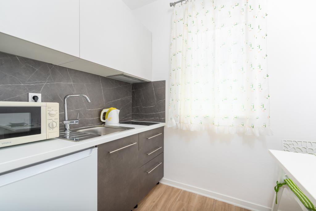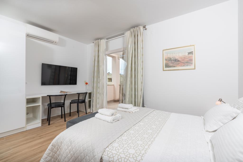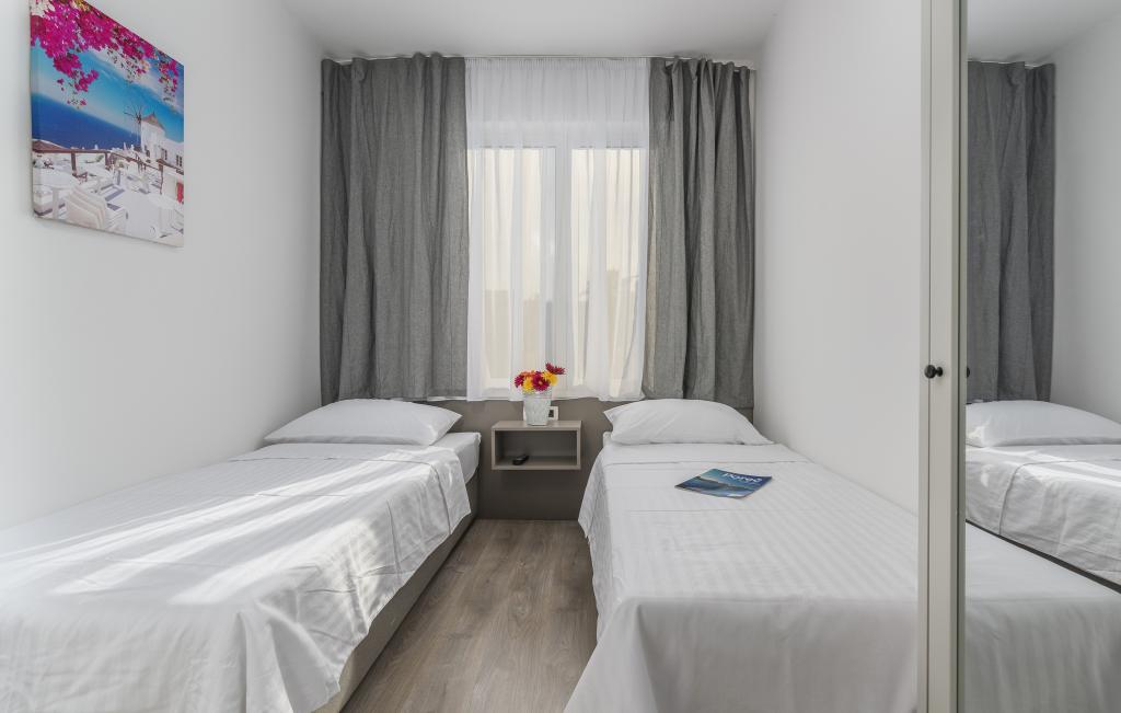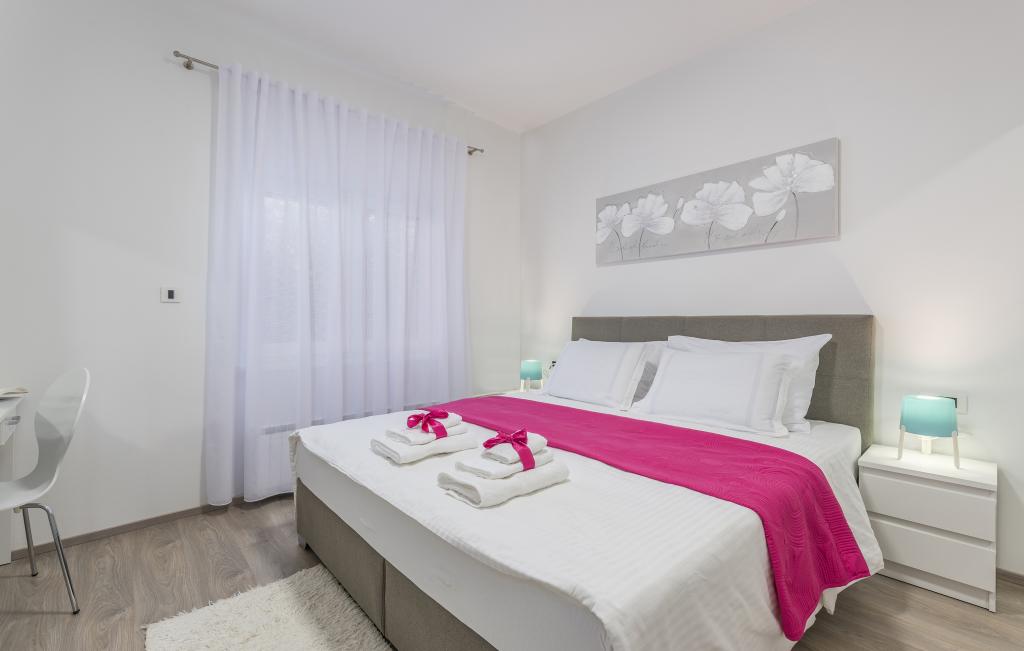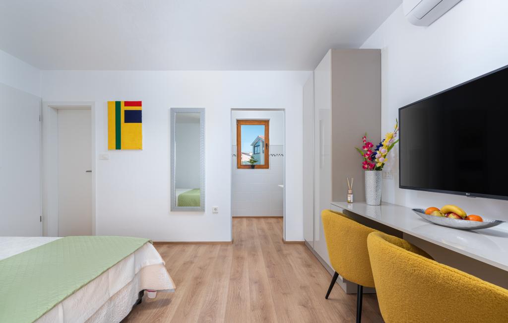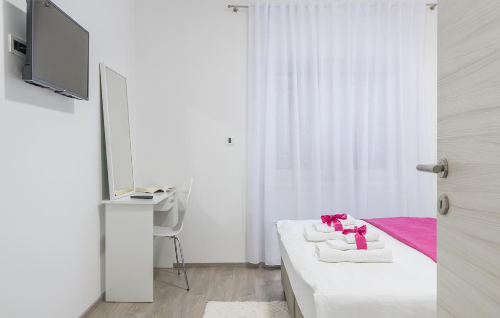 Vores lejligheder ligger i et smukt og roligt boligområde, der tilbyder en perfekt tilflugt fra sommerens travlhed, men alligevel tæt på alt. En afslappet gåtur på 10-15 minutter bringer dig til den smukke Borik-strand eller Porečs livlige historiske centrum. Et stort supermarked ligger kun 4 minutters gang væk, hvilket er meget bekvemt for familier.