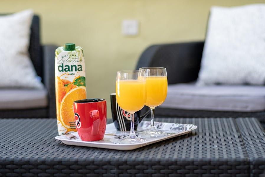 Vi tilbyder vores gæster en velkomstdrink og hjemmelavede desserter.