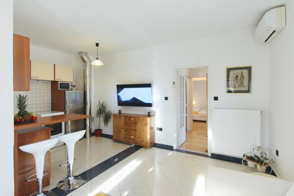 Centret er en tre værelses lejlighed på 75m2, som kan rumme op til 7 personer, som ligger i centrum af Posedarje, Norddalmatien. Kun 20 minutter fra travlheden i den smukke by Zadar, placeringen af lejligheden er udgangspunktet for vandreture og sightseeing, og vores rummelige terrasse med udsigt over den centrale plads er ideel til hvile og nyde de solrige dage og nætter fyldt med musik. Lejligheden er beliggende på første sal i den nyrenoverede traditionelle dalmatiske hus. Den har sin egen separate indgang, wi-fi, aircondition og alt hvad du behøver til din ferie.