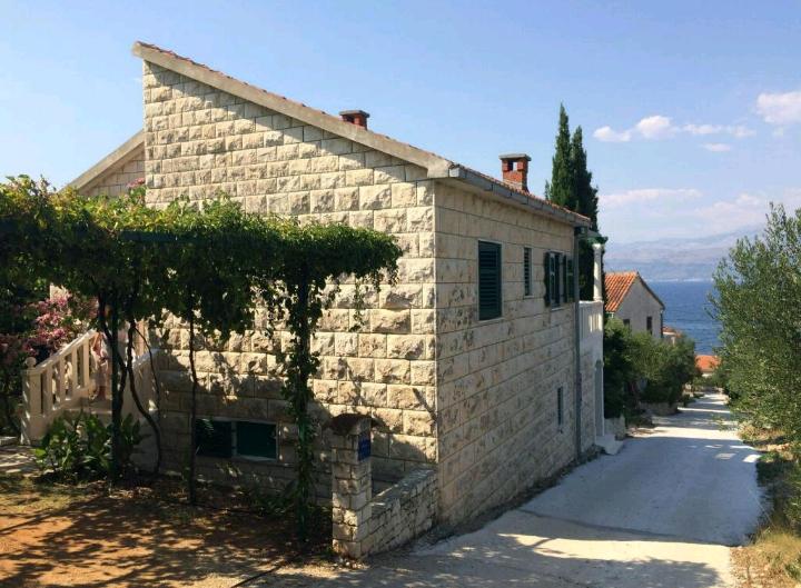 SPLITS ER EN SMUK BAG, 5 KM FRA SUPETRA OG 2 KM FRA Postir Stedet er hyggeligt for dem, der ønsker fred og ro. Lejligheden ligger i stenhuset på 1. sal. i stueetagen ejer den entré og ingen kontakt til ejeren, så gæsten har ro og privatliv. Lejligheden har 3 værelser, køkken, 2 badeværelser og terrasse på 20 kvm. havet og er dækket af marmorsøjler med glycingrønt Hvert værelse har loftsventilatorer og temperaturen er behagelig, fordi stenhusets vægge er tykke, så isoleringen er god I haven er der en stor parkeringsplads masser af skygge. Haven har frugt, som kan bruges som en have, hvis du ønsker bil til Postir 8 eller 15 minutter til Supetar og komme tilbage separat i fred og ro Lejlighed mere s