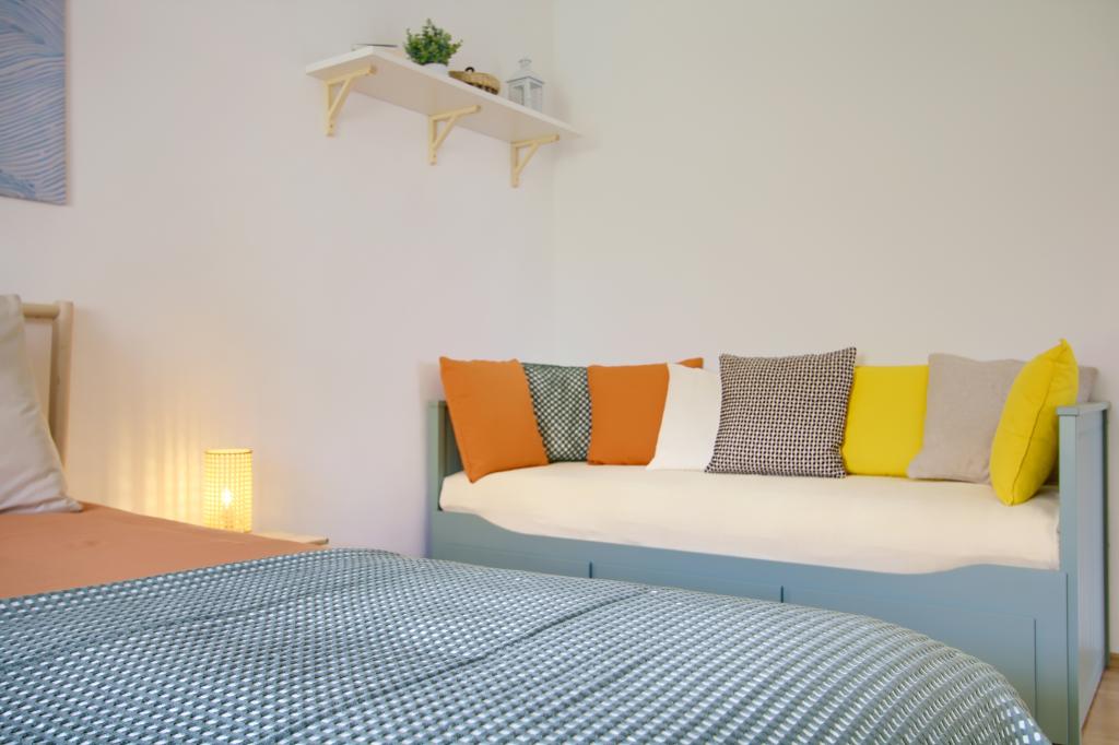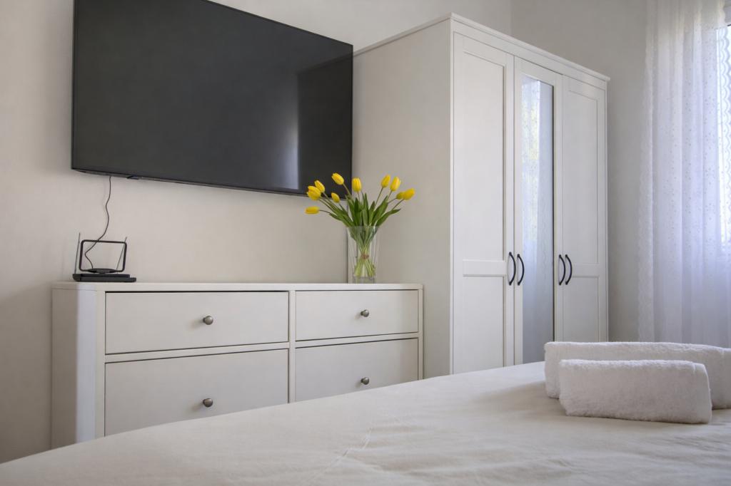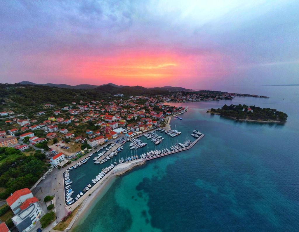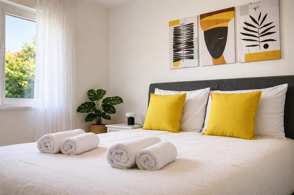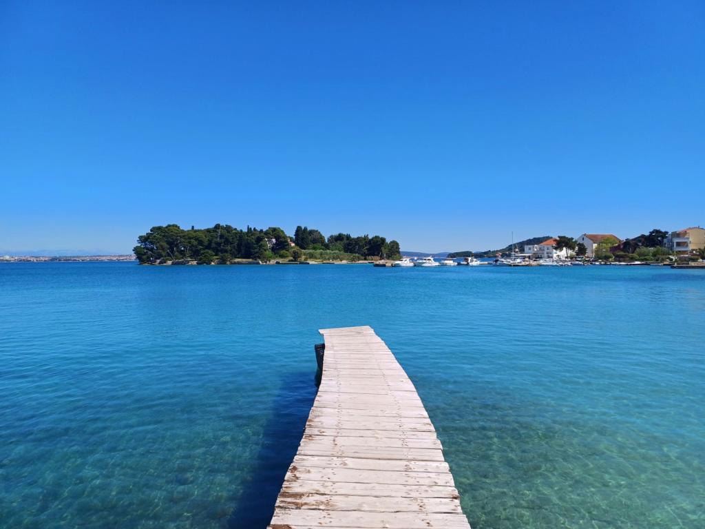 Denne charmerende og lyse lejlighed, der ligger i første række til havet, tilbyder den perfekte kombination af komfort og middelhavsatmosfære. Med en smuk udsigt over haven og fredelige omgivelser er den ideel til familier eller grupper på op til 4 personer + 1 ekstra gæst. Foran huset er der en stenstrand, perfekt til en morgensvømmetur eller aftenafslapning med bølgernes brusen, mens den berømte sandstrand Jaz kun ligger 20 minutters gang derfra. Beliggenheden er yderst praktisk - i umiddelbar nærhed er der restauranter, butikker og alle basale faciliteter, som nemt kan nås til fods uden behov for en bil. Lejligheden er fuldt udstyret til et komfortabelt og ubekymret ophold og inkluderer aircondition, WiFi-internet, kaffemaskine, køleskab, ovn og Smart TV på værelset, der giver alt hvad du behøver for at slappe af efter en dag til søs. Rummet udstråler en munterhed og afslappet, livlig atmosfære, perfekt til en ubekymret ferie ved havet og nydelse af middelhavslivsstilen.