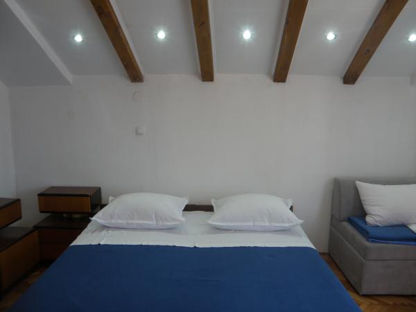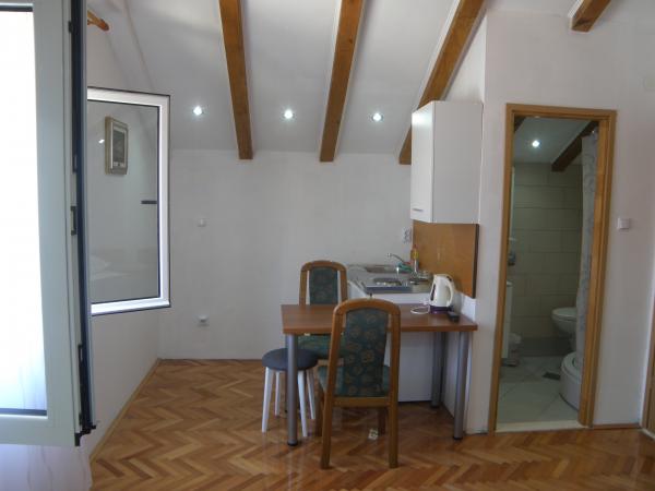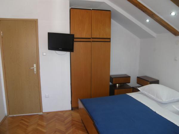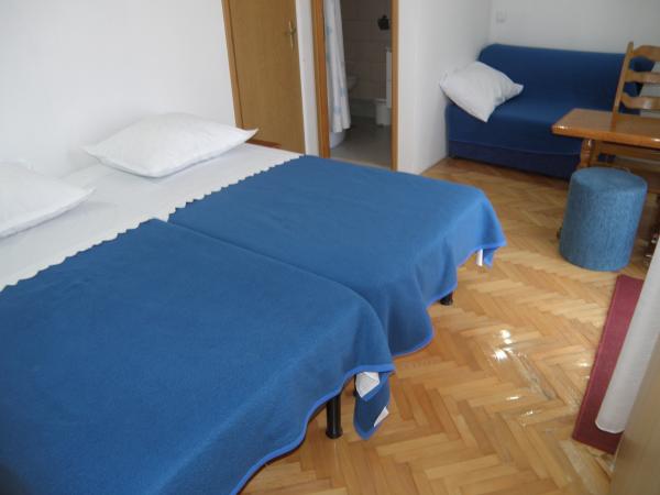 Dejlig og moderne lejlighed til fire eller fem i centrum af Primosten med parkering til en bil, et par minutter til stranden, et par minutter til de vigtigste square, markeder, butikker. Komfortabel aircondition, kan du bruge gratis wi-fi. Den består af to etager. Øverst er to soveværelser og et lille badeværelse. I det ene værelse er dobbeltseng og en tvilling, begge soveværelser føre til en lille balkon. I den nederste del af køkken, spisestue, en sofa og en veranda. Beliggende i en rolig del af byen, og alt er lige ved hånden - perfekt til en ideel ferie. Studio Thomas Put mulberry 19, i en rolig gamle bydel. Dobbeltværelse med en ekstra seng er beriget med køkkenhjørne og badeværelse. Den er udstyret med tv og aircondition er i hallen og dens fremragende isolering køler værelse i en meget kort tid. Parkering er i gaderne tilbage af Gregory af Nin, ved siden af parken.