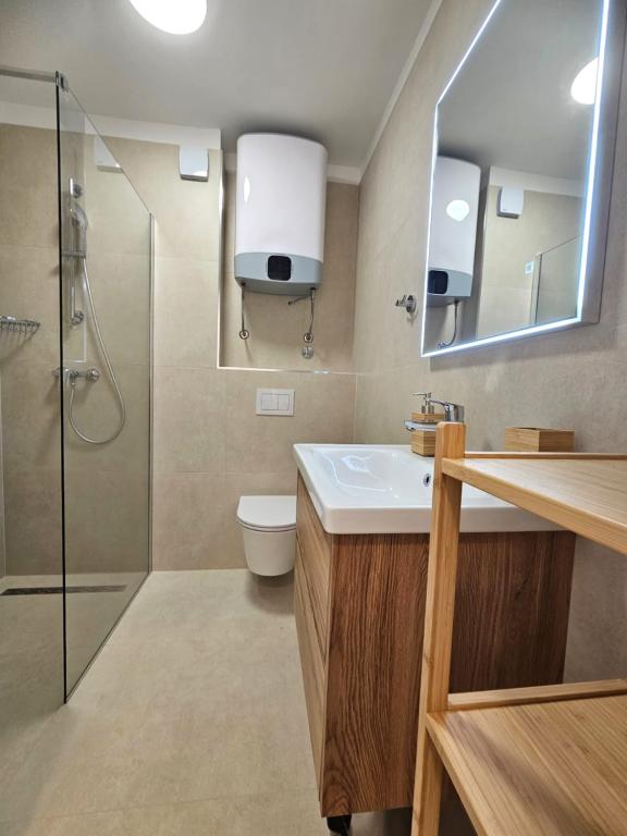 Den moderne to-etagers lejlighed Miamare i Primosten ligger 100 meter fra byens centrum og stranden (1-2 min gang) Den består af køkken, stue og toilet i stueetagen og to soveværelser og et badeværelse på den første. etage. Den er udstyret med tre klimaanlæg og en internetforbindelse. Der er gratis parkeringsplads foran lejligheden. Alle væsentlige faciliteter er placeret i umiddelbar nærhed i en afstand af mindre end 100 m (butik, apotek, marked, restauranter, slagter). , postkontor...).