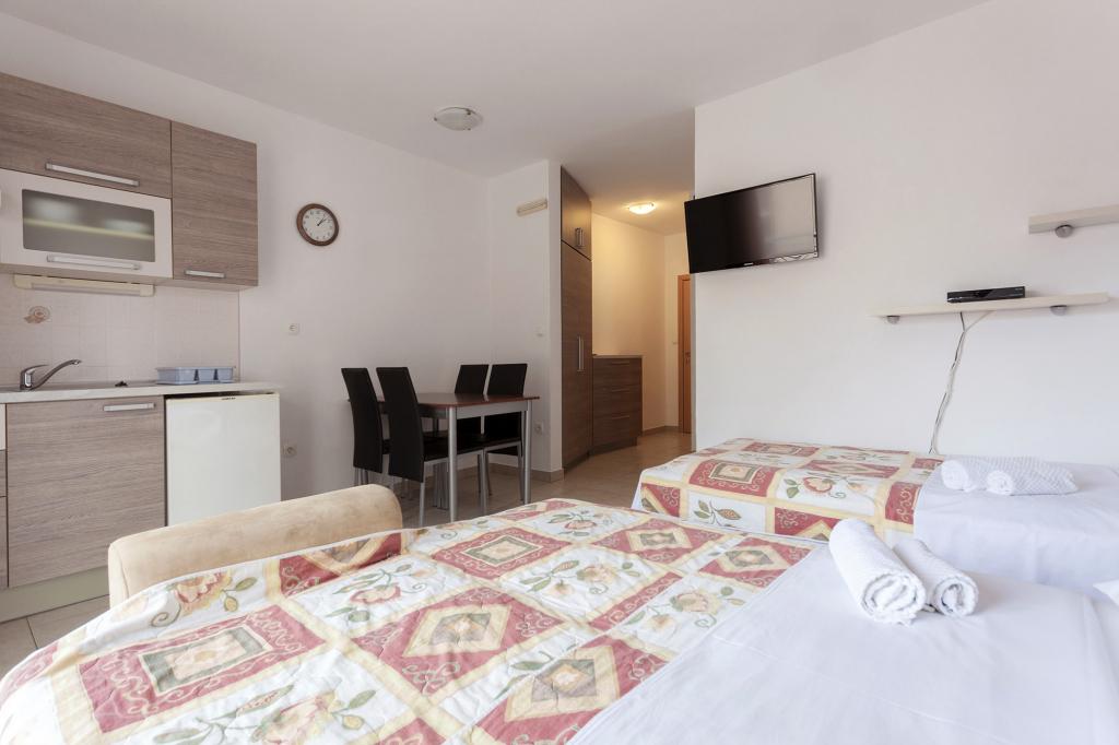 Lejlighederne i en ideel placering, fordi overalt tæt (2 lange strande, butikker, inf. Turist, tankstation, vekselkontor, apotek, bager, slagter), mens ikke en gågade, så natten er der stilhed. Værelser rene, godt udstyret med pæne møbler, store senge, masser af skabe, balokony, selv i badeværelset vaskemaskine. Parkering foran bygningen. Selvfølgelig anbefaler jeg Primosten, meget lange strande hele vejen rundt om næsset, så selv som en masse mennesker, som alle vil finde plads nok på stranden til dig selv. Lejlighederne er værd at anbefale.