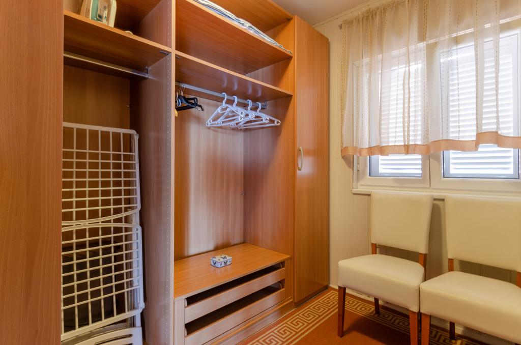 Lejlighed i familiehus, nord-syd-orienteret, 30 m fra havet, beliggende på 1. sal.Den består af to soveværelser, stue/spisestue med køkken, lille påklædningsværelse, bad/toilet og terrasse med udsigt til havet fra 12m2.Der er en dagligvarebutik i nærheden af lejligheden, og du kan nemt gå til Prizba centrum, ca.400m til alle andre faciliteter.