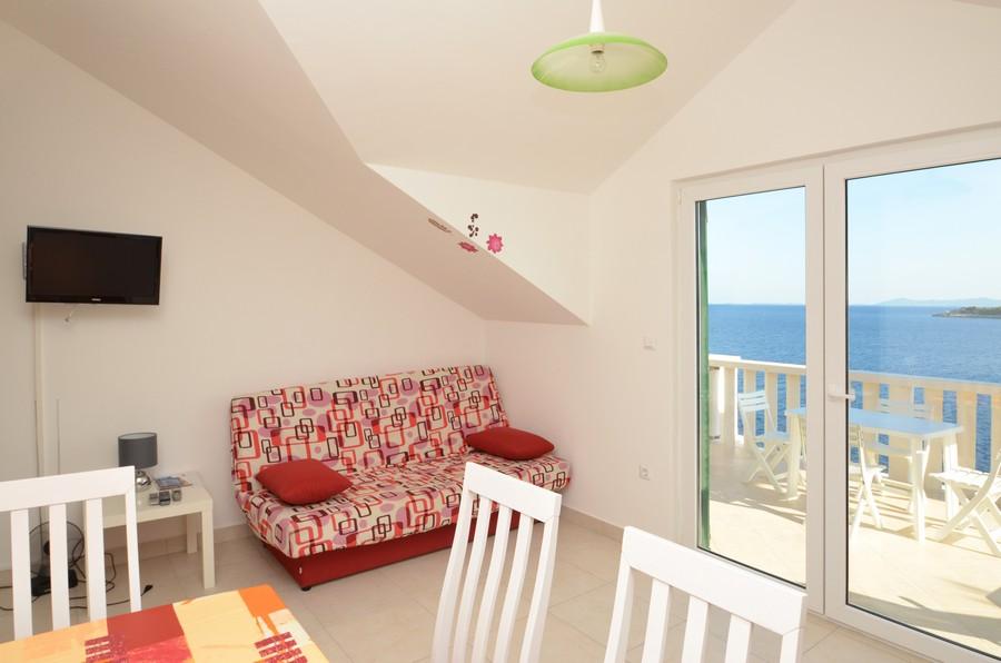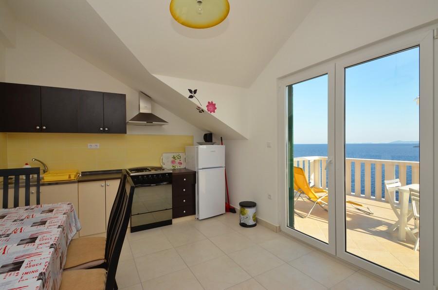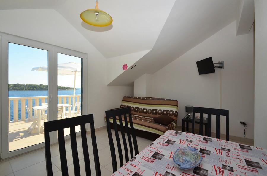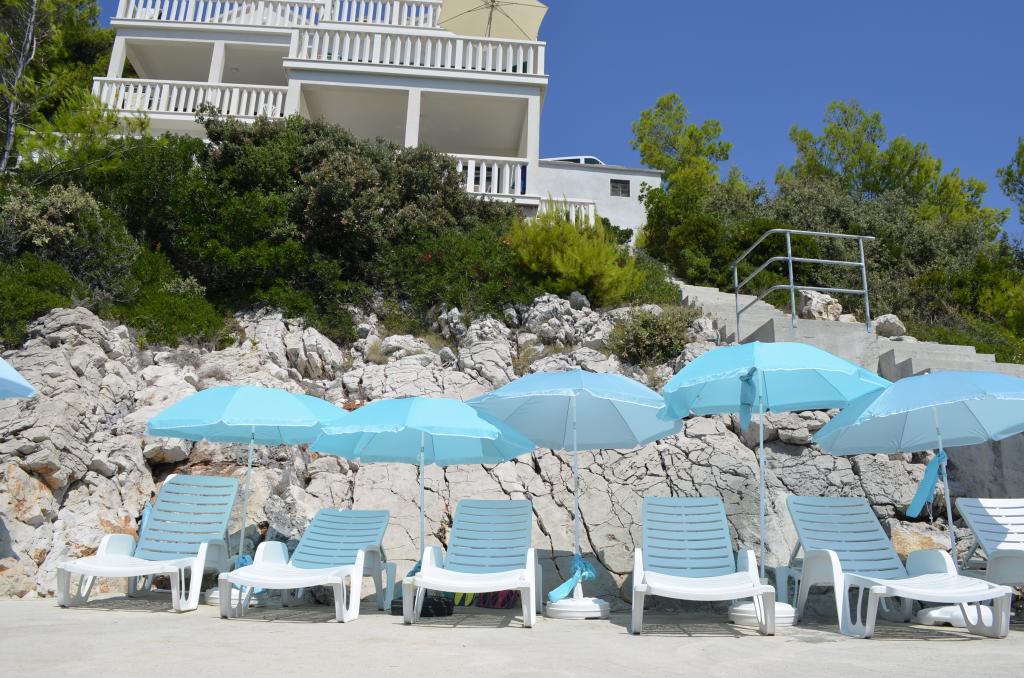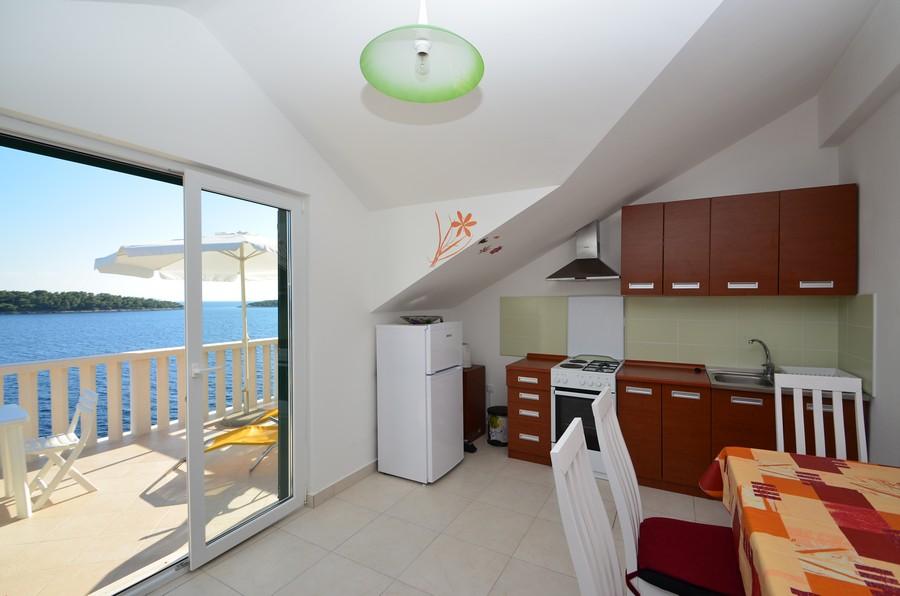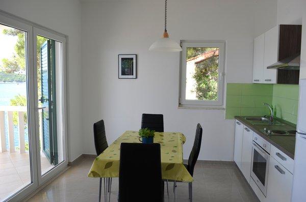 Huset ligger ved havet i et roligt sted. Lejlighederne er nye og veludstyrede. Foran huset er der en stor parkeringsplads, gratis og hyggeligt for alle vores gæster. Hver lejlighed har egen terrasse med udsigt over havet og øerne. Der er to private strande med gratis paraplyer og liggestole i nærheden. Der er en dykkerskole, sejlskole, bådudlejningsbureau, knallert, kano, forskellige restauranter, smukke vandre- og cykelstier.