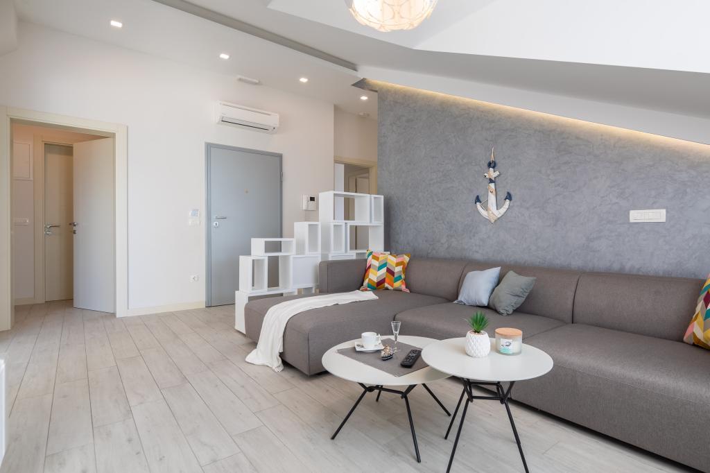 Penthouse Potter er en moderne lejlighed med 3 soveværelser og 3 badeværelser. Det rummelige køkken byder på fantastisk udstyr. Balkonen har udsigt over havet. Det ligger 50 m fra stranden i Promajna. Der er 2 parkeringspladser ved siden af bygningen.