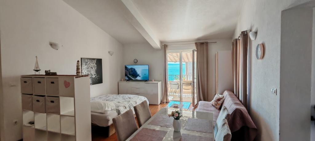 Jeg anbefaler med god samvittighed, vi boede i lejligheden 2 + 2 10 dage. Lejligheden er meget stor, rummelig og meget ren, en smuk stor terrasse med udsigt over havet, intet mere for at være glad, du behøver ikke nogen steder tæt på stranden, til butikken, til restauranten, fantastisk sted, meget smukt sted tæt på Promajna. Ejeren var meget sød og hjælpsom, hun var altid der for at hjælpe. Vi vender aldrig tilbage til de samme steder, men her vil vi helt sikkert vende tilbage