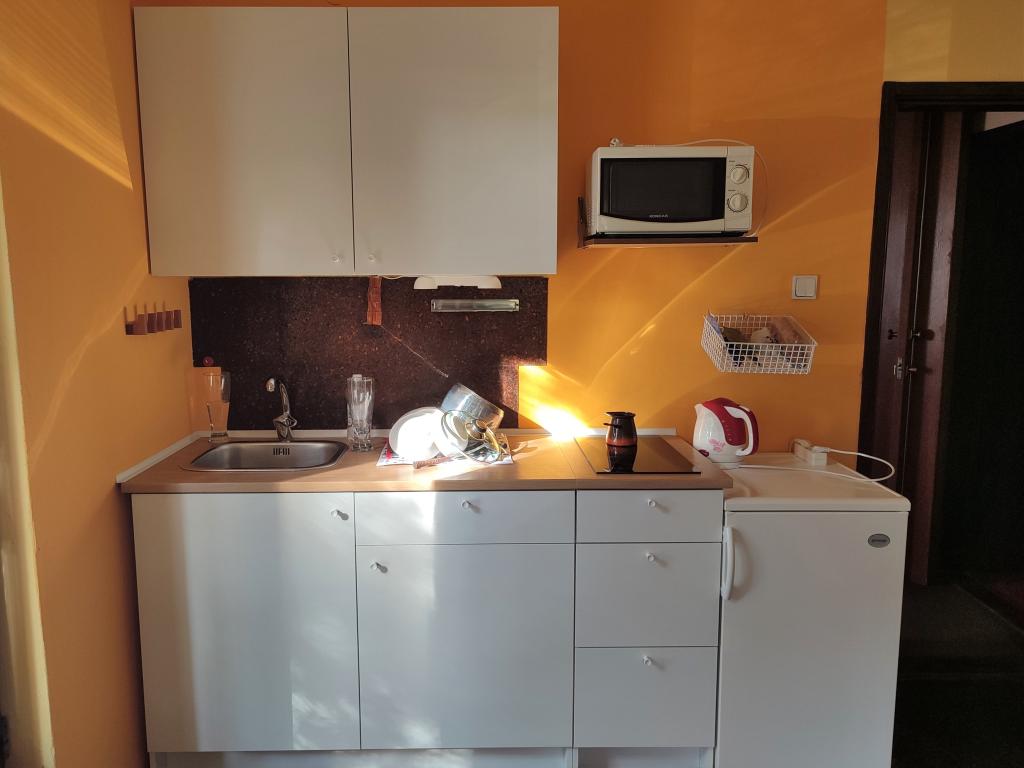 Feriebolig på første sal i et hus omgivet af en stor gårdhave med fyrretræer. Parkering er i gården, centrum og stranden med caféer er omkring 350 m væk, og den første restaurant og butik er 150 m væk. Der tilbydes 3 boligenheder: et soveværelse til to, et soveværelse for to med balkon og en toværelses lejlighed til to med en ekstra seng til en tredje voksen eller to børn. Hvert soveværelse har sit eget badeværelse. Begge lejlighedens værelser har balkon med udsigt til gården. Det er muligt at leje hele salen (1. sal) til 6 voksne og 1-2 børn. For al anden information er ejeren tilgængelig fra 08:00 til 20:00 (Saša mobil: +385 98 493 101).