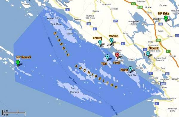 Blot ti minutter væk fra fastlandet (båd regelmæssig linje fra Vodice, Sibenik) eller Taxi - Båd fra Srima.