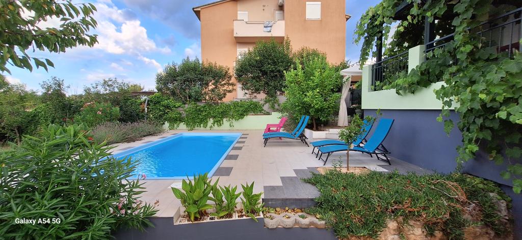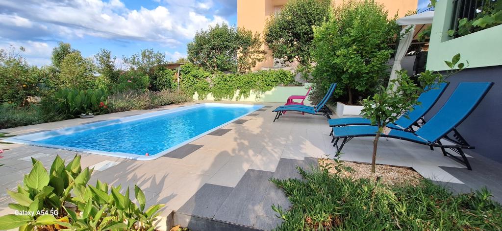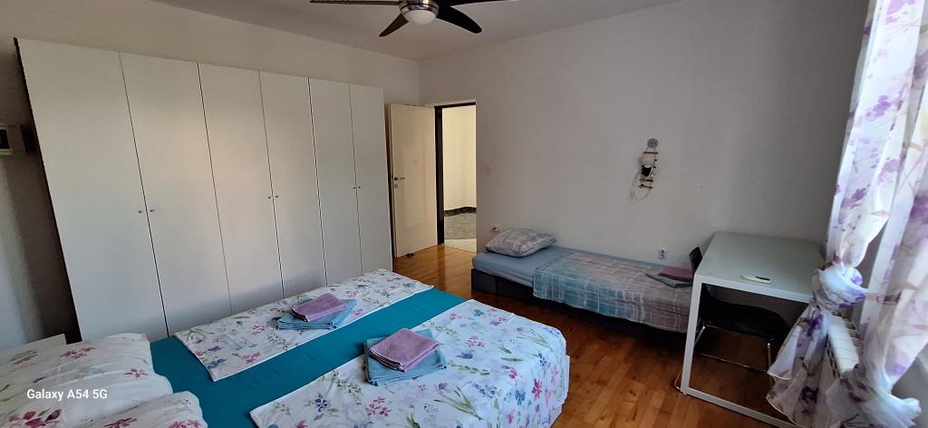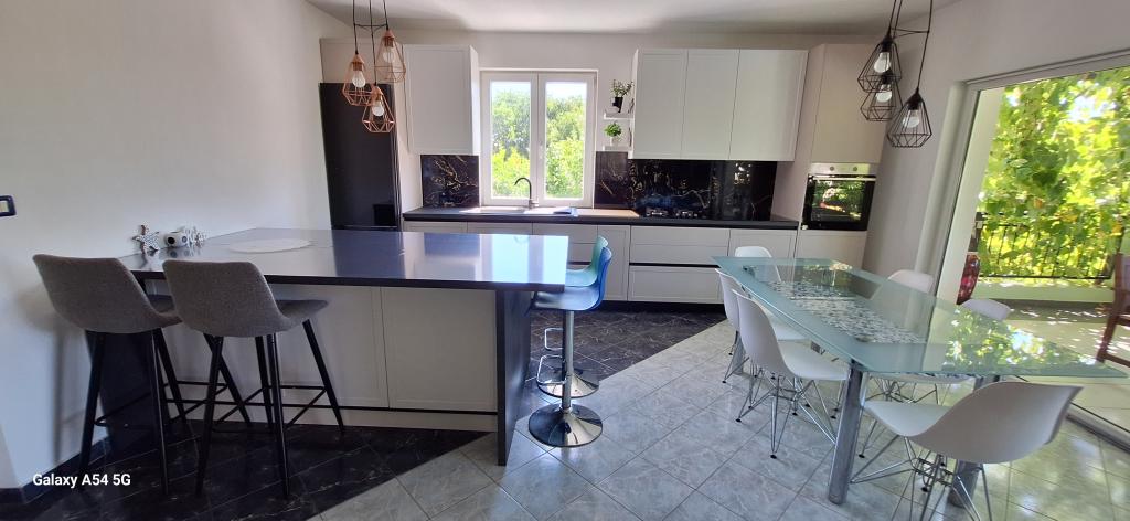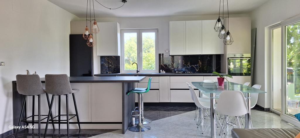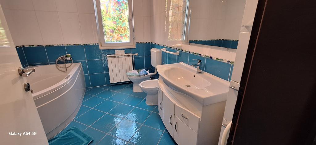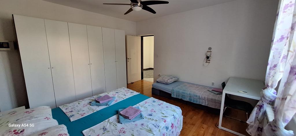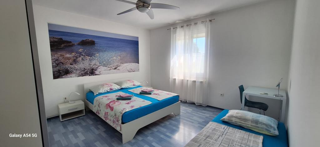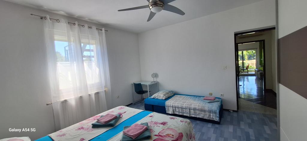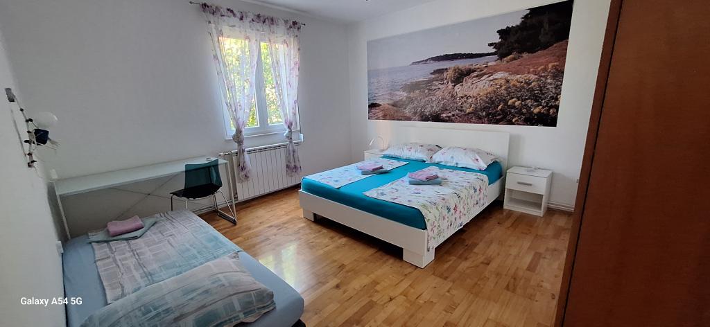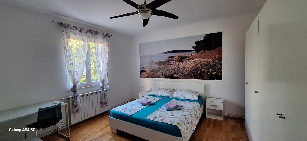 Oplev ægte luksus i vores Art Apartment i Pula, beliggende i smukke Istrien. Denne rummelige lejlighed har plads til op til 6 gæster på 100 kvadratmeter. Den består af 2 soveværelser og 2 badeværelser, perfekt designet til din komfort og afslapning. Stueetagen af huset på 100m2 + 29m2 balkon + 600m2 have med trampolin. Gæsterne har adgang til køkken, spisestue, stue, entré, 2 soveværelser med en dobbeltseng + en ekstra seng i hvert værelse. Stort badeværelse med badekar. Lille badeværelse med bruser. Stor terrasse på 20m2. Udsigt mod skoven.