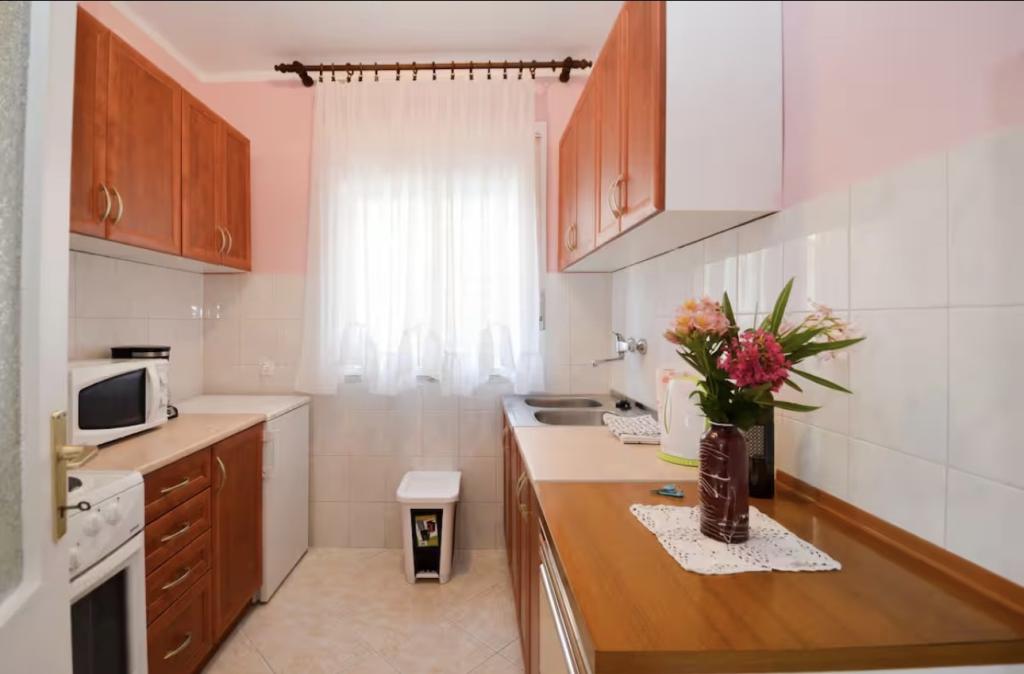 Studiolejligheden "Desiree" ligger i en rolig del af byen Pula, der er fuld af grønne områder. Studiolejligheden er på 45 m2 og ligger i stueetagen af et familiehus med en stor have og separat indgang. Studiolejligheden er rummelig, lys og komfortabel og består af et soveværelse, køkken, stue, entré, badeværelse og terrasse. Den har tv, aircondition og gratis wifi. Køkkenet er udstyret med alle nødvendige apparater, herunder køleskab, fryser, ovn, mikrobølgeovn, kaffemaskine, elkedel, bestik og tallerkener, hvilket giver dig mulighed for at tilberede lækre måltider under dit ophold. I haven foran studiolejligheden kan du slappe af og nyde de fredelige omgivelser omgivet af grønne områder. Studiolejligheden har en komfortabel dobbeltseng, der måler 140 x 200 cm. Der er gratis parkering i huset, og det er også muligt at parkere gratis på den offentlige parkeringsplads foran huset. En stor fordel ved denne indkvartering er nærheden til Pulas centrum og Arena amfiteater, som kan nås til fods på 20 minutter.