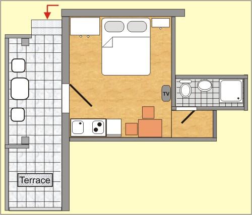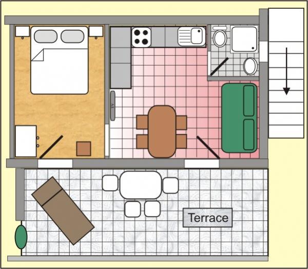 Ferielejlighed til to personer med ekstra seng (45 m2)