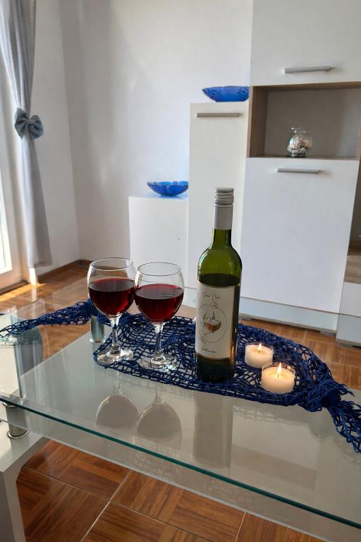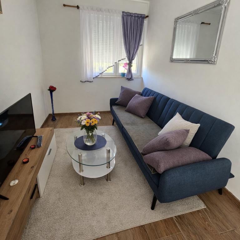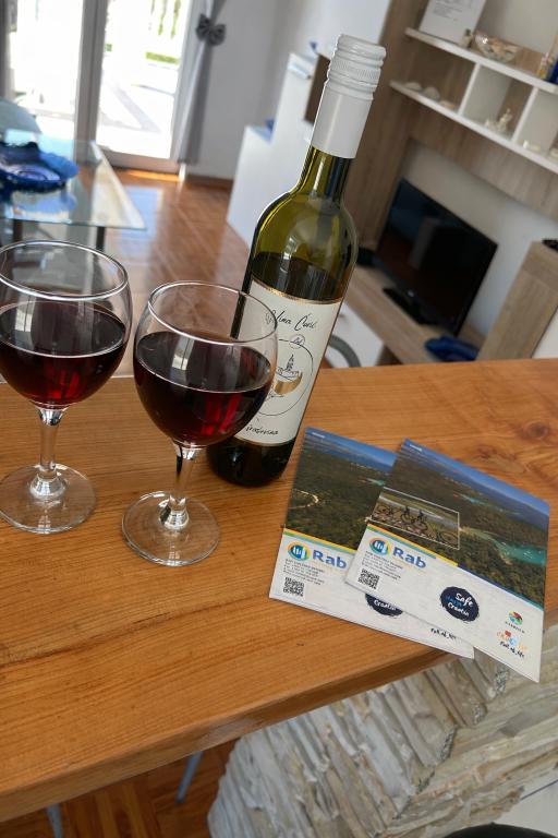 Lejligheder "Kirinec" er beliggende i Banjol på øen Rab. Huset ligger i en fyrreskov, på en bakke med en smuk udsigt over havet. Hvis du virkelig ønsker en rigtig ferie, uden støj, stress og menneskemængder, så er dette det ideelle sted for dig.
