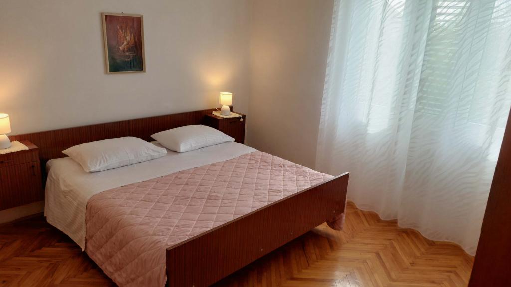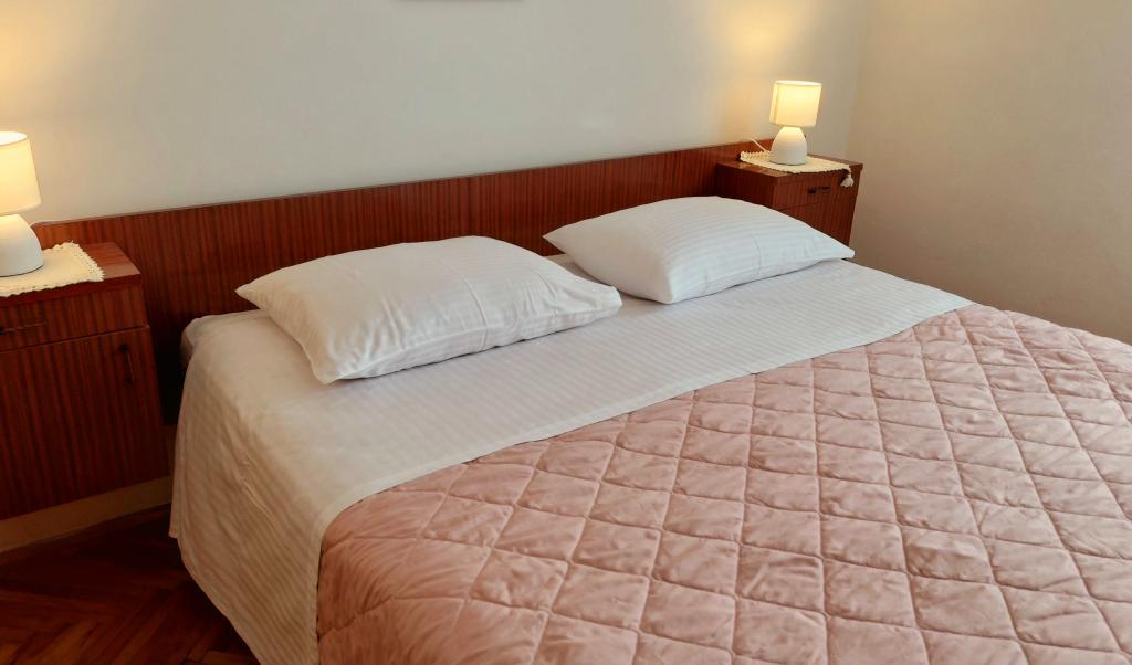 Lejlighederne er beliggende i et smukt hus på en bakke, kun få minutters gang fra sandstranden, Padova 2-bugten. Ikke langt fra ejendommen ligger der en campingplads og et hotel med yderligere faciliteter, supermarkeder samt berømte restauranter og caféer. Huset ligger kun en kilometer fra den gamle bymidte, som kan nås via en promenade langs havet og både, der transporterer turister til meget overkommelige priser. Lejlighederne har to soveværelser med dobbeltsenge og en ekstra seng, og det på første sal har også et enkeltværelse. Hver lejlighed har et badeværelse med bruser. Køkkenerne er rummelige og fuldt udstyrede med en spisestue. Lejligheden på første sal har en 10 m2 terrasse, og lejligheden i stueetagen har en overdækket gårdhave. Der er en privat parkeringsplads foran huset. Den fremragende beliggenhed giver dig mulighed for at lade din bil stå, mens du er på ferie, og ikke bruge den, hvis du ikke ønsker det. Gæster bruger gratis Wi-Fi.