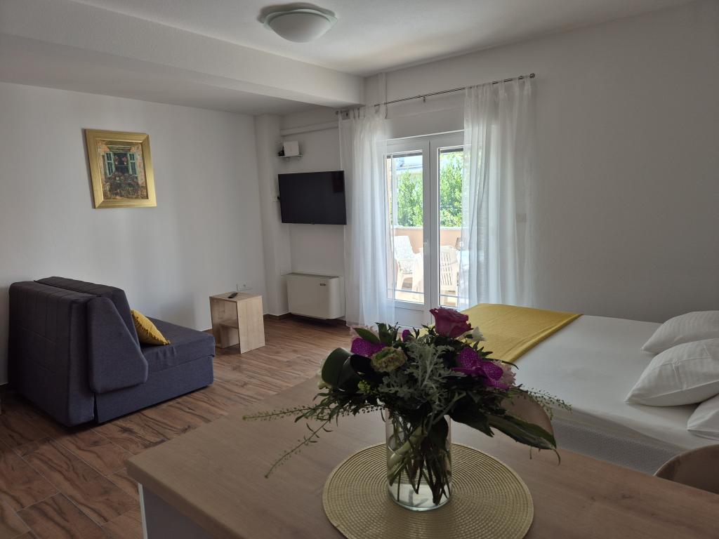 Huset ligger 5 minutters gang fra byens strand og også 5 minutters gang fra den gamle del af byen, i nærheden er butikker, cafeer, restauranter og andre faciliteter nødvendige for et ophold på et sted. Studielejligheden på 1. sal har direkte indgang via trapper kun til egen lejlighed.