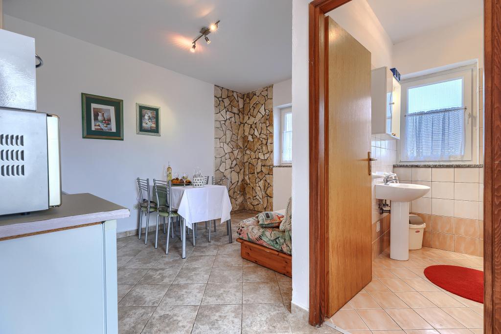 Hus med flere lejligheder i Drenje-byen. Det ligger 5 minutters kørsel fra stranden og 15 minutter fra byen Labin. Lejlighederne ligger i stueetagen. Lejlighederne tilbyder fuldstændig privatliv og mulighed for afslapning og hvile. En lejlighed er på 42 kvadratmeter, har et soveværelse med en dobbeltseng og mulighed for at bruge en ekstra seng. Stue med spisestue, køkken med alle nødvendige apparater, terrasse med havudsigt, badeværelse. Den anden lejlighed er på 56 kvadratmeter, har to soveværelser, hver med en dobbeltseng. Stue med spisestue, køkken med alle nødvendige apparater, terrasse med havudsigt, badeværelse. Den nærmeste restaurant ligger 5 minutters kørsel væk, ligesom det nærmeste marked. Lejlighederne ligger i et roligt område med et behageligt naturmiljø - alt hvad du behøver for en perfekt ferie!