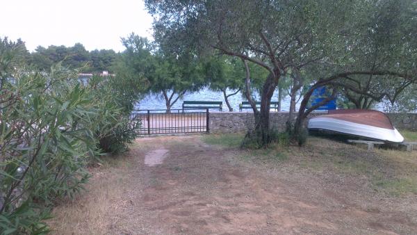 Lejligheden er beliggende i et roligt område Rasline. Shady Beach er 20 meter væk. Hus og lejlighed er omgivet af stenmure. Beplantet med oliventræer, oleander og prydplanter. Inde i hegnet parkeringspladsen. Centret er ca 8 min gang, og der er restauranter og butikker og andre offentlige strande.