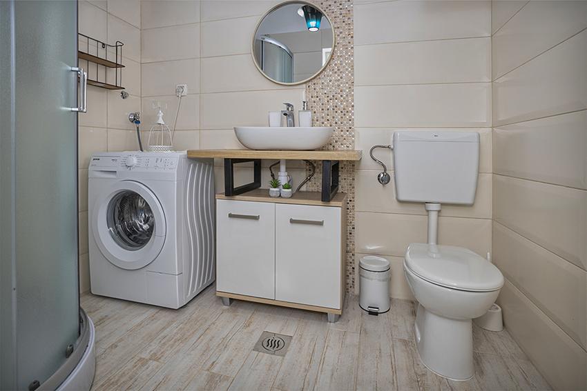 Lejligheden er beliggende i et ugeneret område i den ældre del af landsbyen på toppen af bakken (75 m til 82 m over havets overflade), så I vil nyde freden og roen. Den ligger 100 m fra nærmeste strand og kan nås til fods ad den gamle vej eller til fods eller i bil på den nye vej. Køkkenet er moderne udstyret, og du kan bruge køleskab med fryser, ovn, opvaskemaskine, espressomaskine, brødrister, kedel, mikroovn. Bygningen har aircondition og gulvvarme. Badeværelset er udstyret med vaskemaskine. Lejligheden har to værelser. Det ene har en dobbeltseng og det andet værelse har to enkeltsenge, der kan sættes sammen. Du kan også nyde det udendørs på den rummelige terrasse.