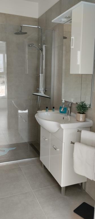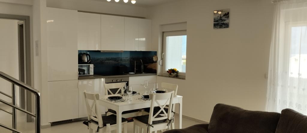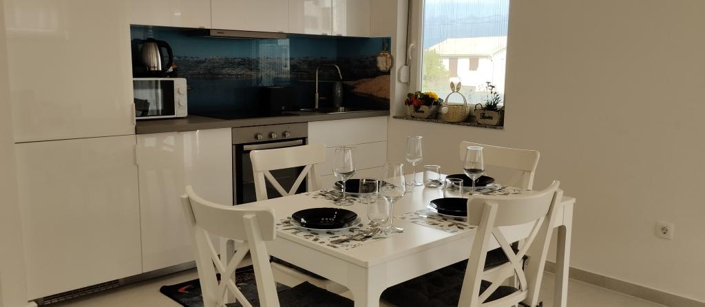 Lejlighed TUSUM ligger i den lille fisker- og turistby Ražanac. Det er kun 5 minutters gang til smukke strande med krystalklart hav. Lejlighed Tusum er en nyindrettet toetagers lejlighed med en storslået udsigt over havet og bjergene. I stueetagen er der et moderne køkken med stue og badeværelse, og på første sal er der to soveværelser og et badeværelse. Lejligheden har aircondition, gratis wifi og er udstyret til 4 personer. Den har separat indgang, privat parkering, terrasse i stueetagen og balkon på første sal med en smuk udsigt over haven, byen, havet og bjergene. I værtens hus kan du smage hjemmelavet vin og brandy, olivenolie, hjemmelavet frugt og grøntsager.