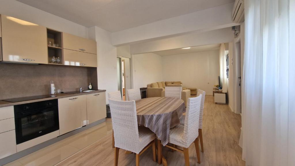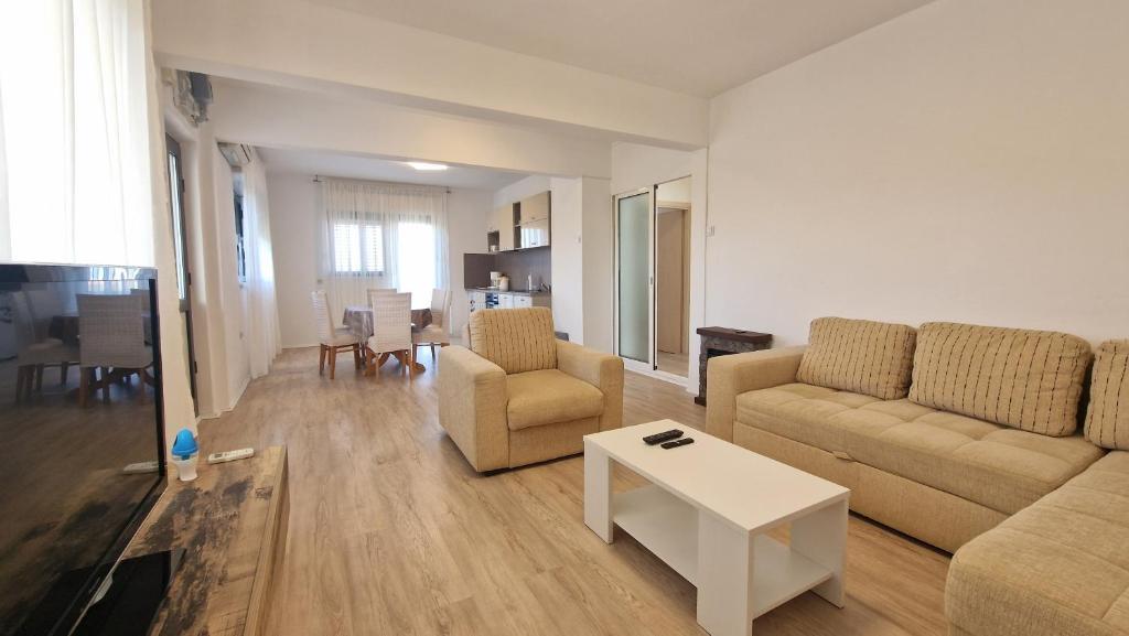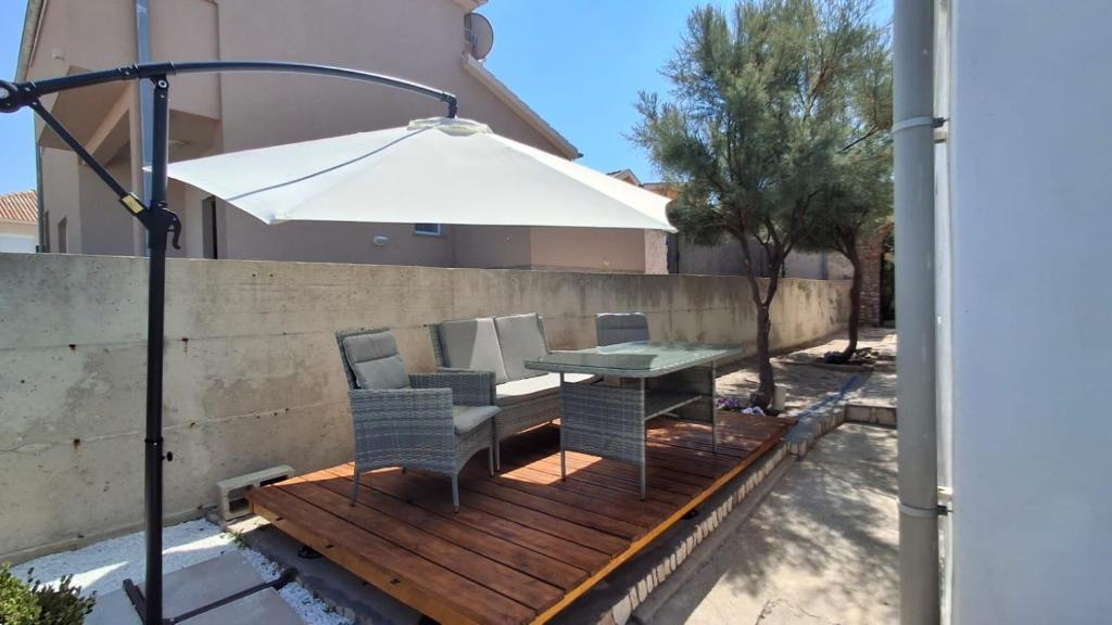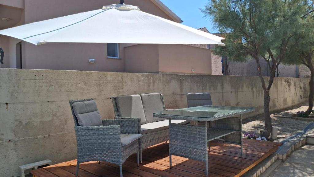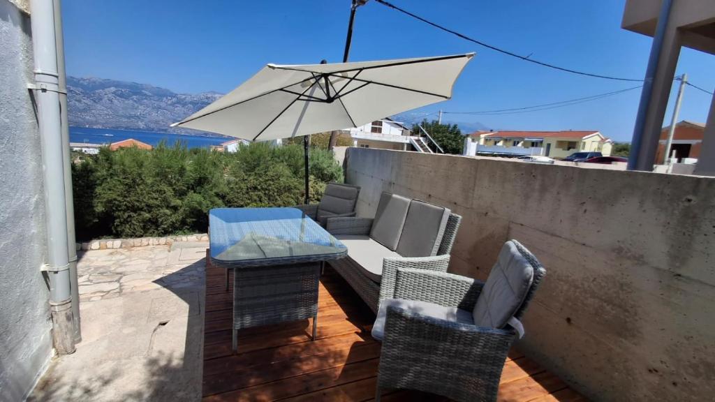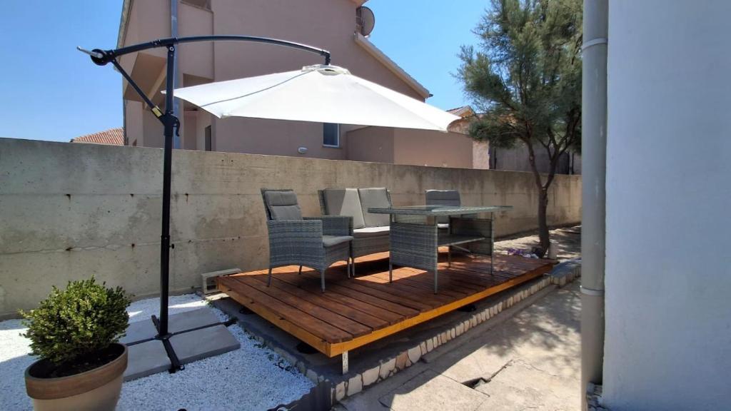 Vores gæster har 2 helt separate lejligheder, parkering og en komplet have til rådighed. I haven er der et særligt anlæg med grill og udendørs bruser. Lejligheden tilbyder en smuk udsigt over havet og Velebit-bjerget, og stranden ligger kun 3 minutters gang væk.