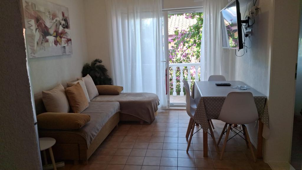 Pænt møbleret lejlighed i en rolig bugt 50 meter eller 3 minutters gang til stranden. Betonpromenade langs havet til byens centrum.