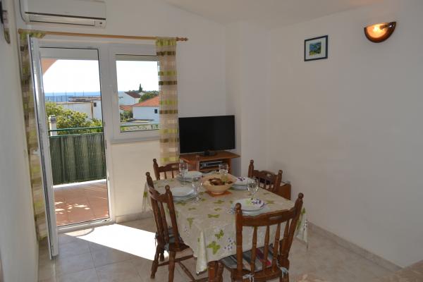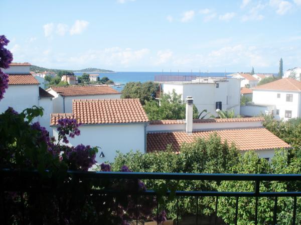 Fuldt møbleret lejligheder med havudsigt, fra stranden 50 meter fra centrum 10 minutter. Hver lejlighed er aircondition, med mulighed for at bruge internettet. Hver lejlighed har et badeværelse, et separat køkken med en kedel og ovn. Lejligheden har to soveværelser, hvert værelse har en dobbeltseng. Et værelse åbner ud til en terrasse med en balkon, mens den anden har et stort vindue. Lejligheden har en stue, spisestue og en sovesofa. Lejligheder har satellit-tv. Hver lejlighed har en terrasse med bord og stole og parasol. Huset har en parkeringsplads, og hver lejlighed har sin egen parkeringsplads foran huset. Også, tilbydes og overdækket grill brug af gæster.