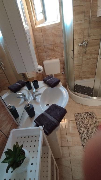 Vi tilbragte 12 dage i Fiso-lejligheden med en anden familie og, vigtigst af alt, vores pelsede medlem, for vi havde ingen hund nogen steder. Alt var fantastisk, lejligheden ligger i stueetagen, der er grønne områder omkring huset og en stor terrasse til aftensammenkomster, og hunden kan være omkring os. Stedet er lille, og der er ingen turister, der går eller råber over hovedet på stranden, hvilket er fantastisk, hvis man vil slappe af. Måske mangler butikken lidt, men vi tog det meste med alligevel. Beliggenheden er fantastisk, fordi du kan være i de omkringliggende byer som Primošten og Trogir på ingen tid. Og endnu et tip til vores kære værter. Opdater annoncen, for der er meget mere end angivet i annoncen. Fyren har en mikrobølgeovn og en opvaskemaskine. Jeg foreslår en plastikbeholder på badeværelset, så man kan tage vasketøjet ud, inden man lægger det til tørre. Tak igen fra bunden af mit hjerte.