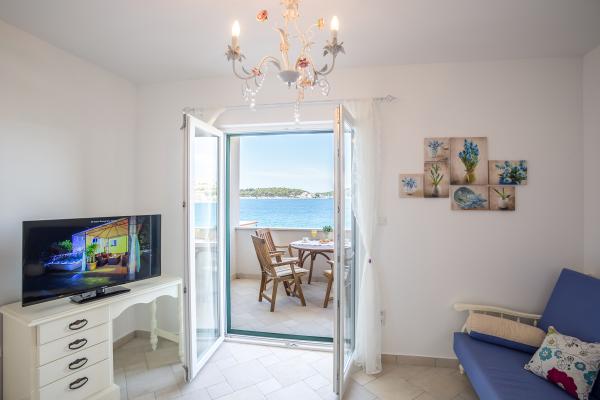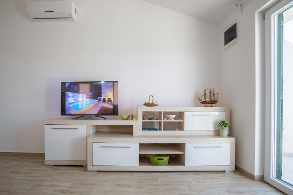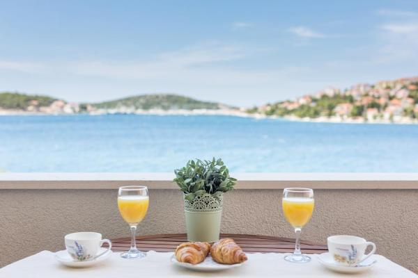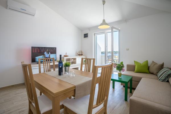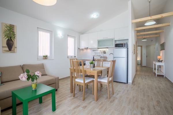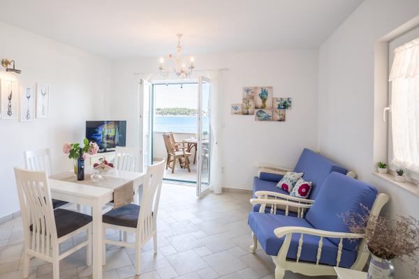 Vi er beliggende i Rogoznica, navnlig i Zatoglav. Zatoglav er et roligt sted, uden for trafikpropper, ideel til familieferie i en afslappet atmosfære, selv om kun to kilometer fra turist centrum og seks af Primosten. . Så de eneste to kilometer radius kan du finde alt hvad du behøver - supermarkeder, apotek, bank, posthus, restauranter, barer, legepladser og så. Vi tilbyder to nye og moderne lejligheder, beliggende 30 m fra havet. Den første lejlighed er beregnet til 4 personer og den anden er 4. * 2 Hver lejlighed har en terrasse med udsigt over havet, trådløst internet, satellit-TV, aircondition og parkeringsplads.