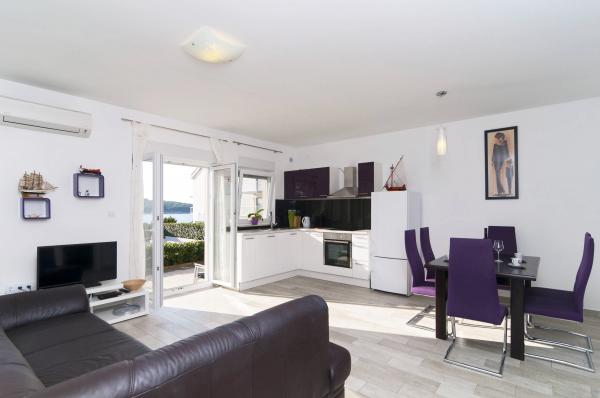 Mr. Prcela var stor ejer. Lejlighed var meget ren og alt var jn orden! Beach er kun 1 monute gåtur. Det er ikke stort, men det er virkelig rart. Havet er cristal klart. Coffe bar er tæt, og det er billigt. Stærkt anbefale disse lejligheder!