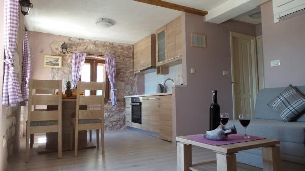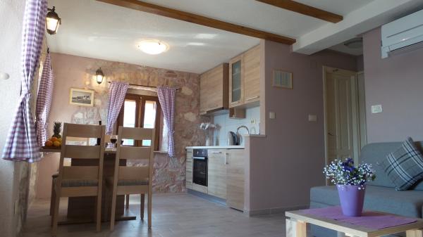 Dalmatien er kendt for sine gamle stenhuse, så hvis du nogensinde ønsket at bo og føle atmosfæren, at det giver det er den rigtige mulighed for dig. Villa Dvor er en unik mulighed for at ferie i en traditionel dalmatiske stenhus bygget for mange år siden. Huset er fuldstændig renoveret 2014 og indeholder tre identiske lejligheder arrangeret over tre etager med indgang fra intern trappe. Hver lejlighed har en betagende udsigt over havet, der er kun ti meter. Huset er beliggende i centrum af Rogoznica, på havnefronten, ud til havet. Alle de essentielle bekvemmeligheder er lige ved hånden: en restaurant, cafe og butikker er placeret op til 50 meter ... Velkommen!