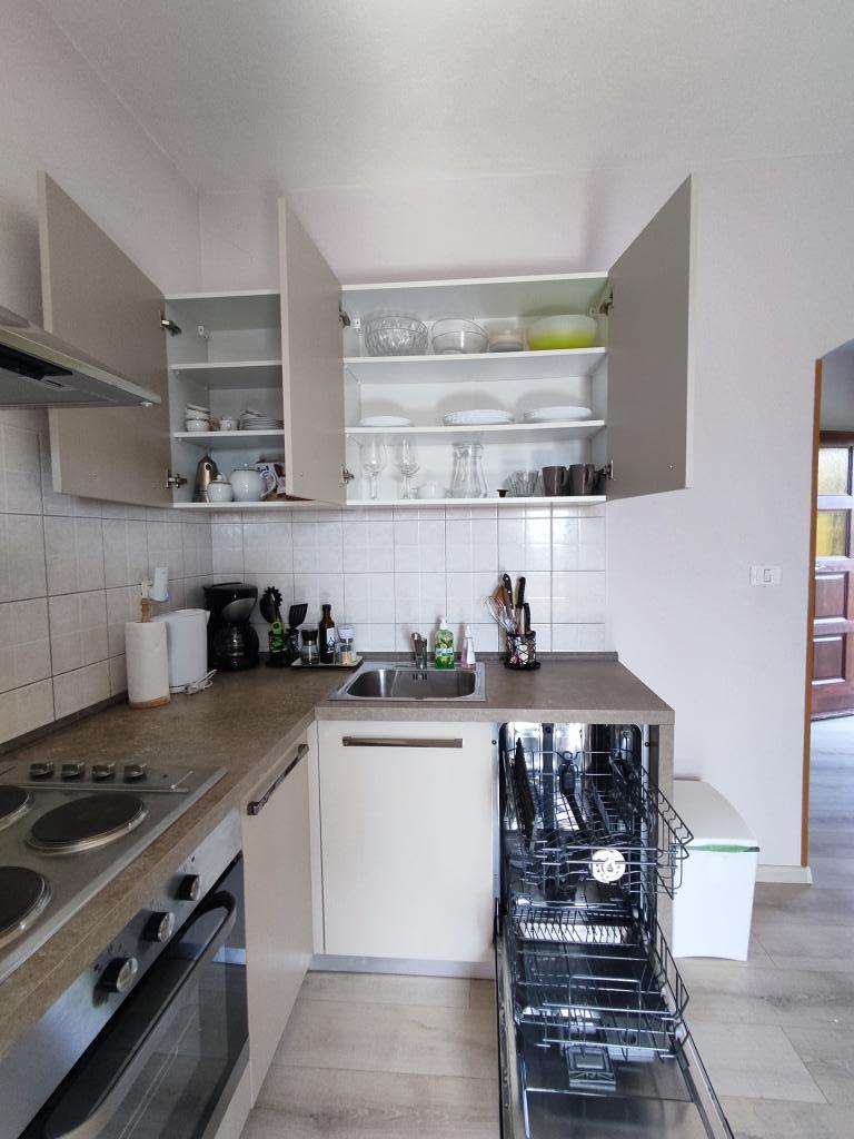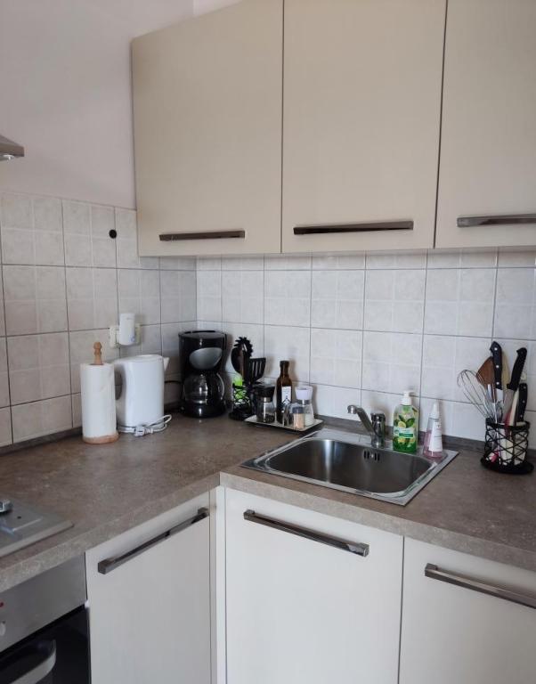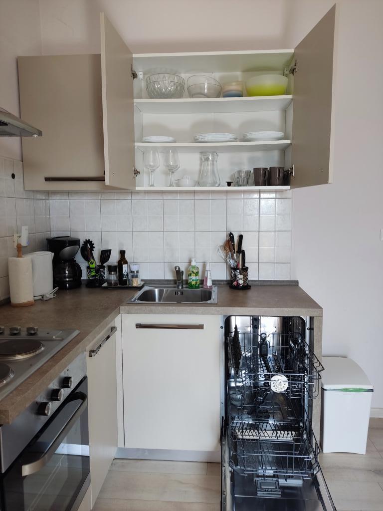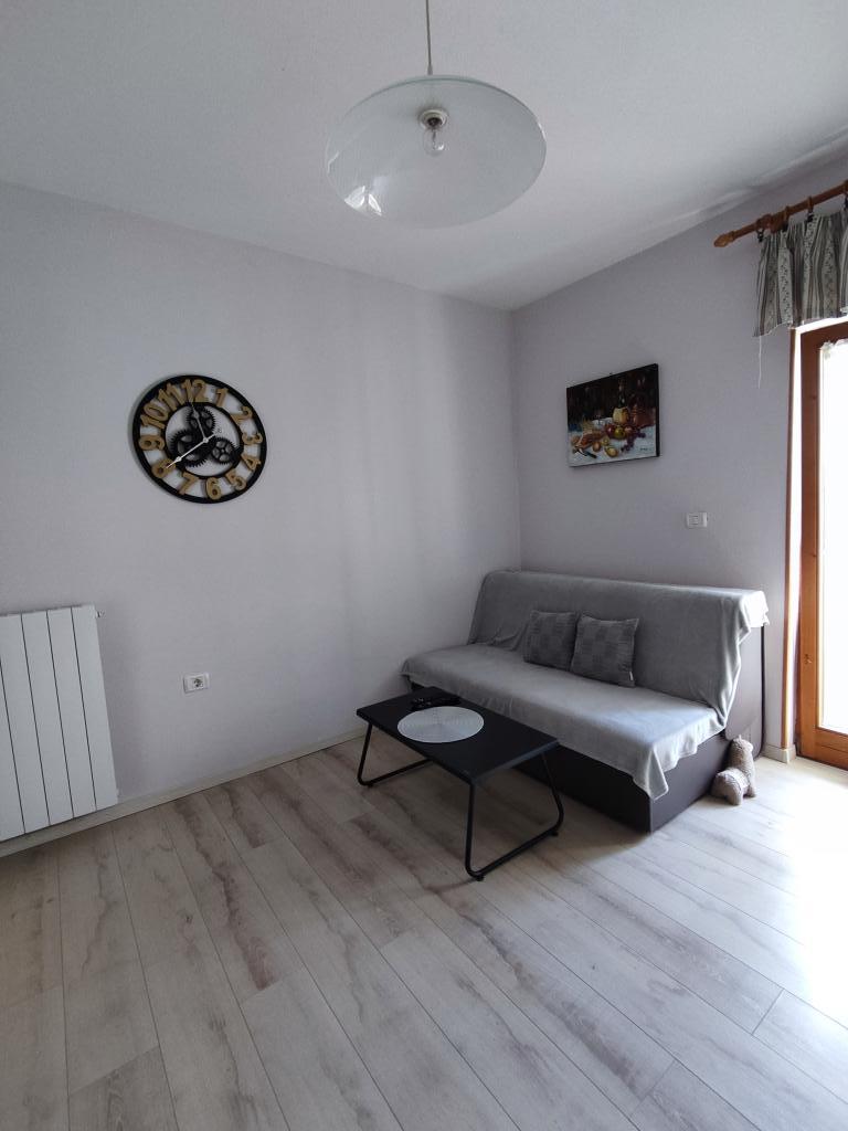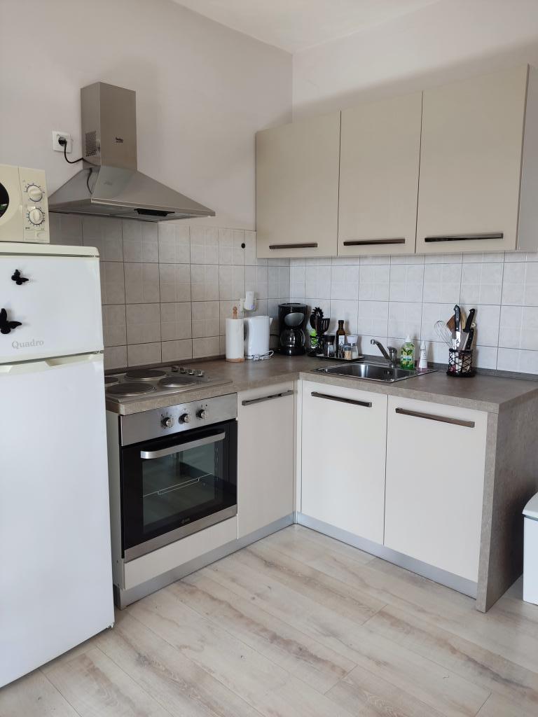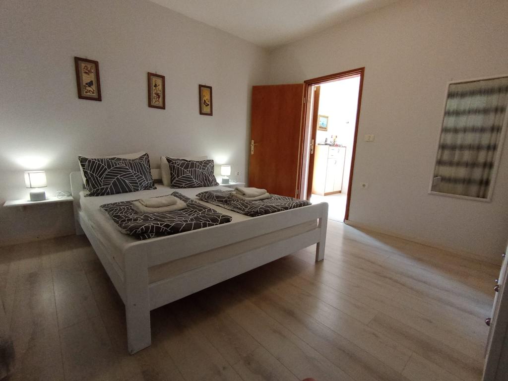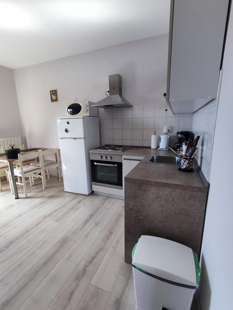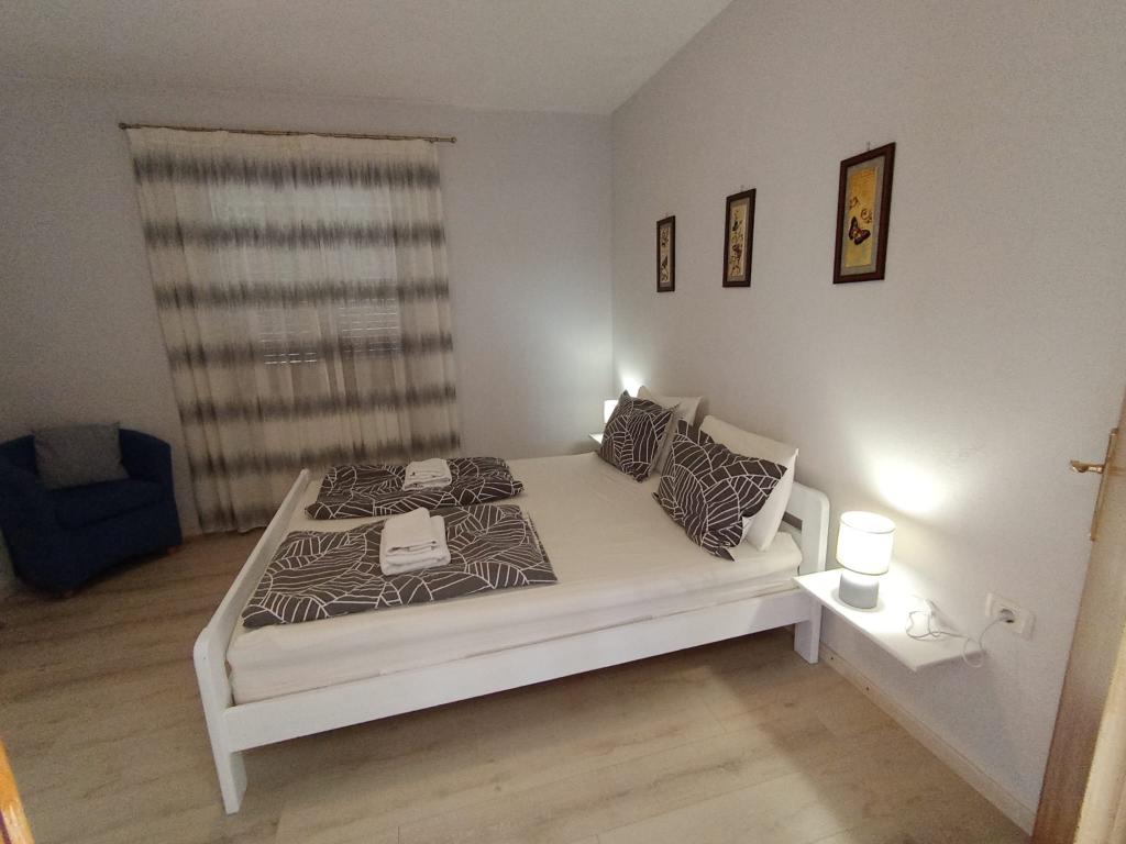 Lejligheden ligger i landlige omgivelser, i gåafstand kan du købe frisk frugt og grøntsager, honning, hjemmelavede æg... 700 m fra den første strand. Et soveværelse med en dobbeltseng og en ekstra sovesofa med en topmadras til to ekstra personer, med to terrasser med udsigt over naturen og olivenlunden, kan gæsterne også nyde skyggen under vinstokken. Vi har udstyret lejligheden med alt, hvad vi mener er nødvendigt for en behagelig ferie: håndklæder, sengetøj, køkkenudstyr, krydderier, ekstra jomfruolivenolie, olie, eddike, kaffemaskine, mokka, elkedel, brødrister, mikrobølgeovn, ovn, opvaskemaskine, vaskemaskine, hårtørrer, strygejern, aircondition, toiletpapir, sikker parkeringsplads... Rygning er tilladt på terrasserne. Kæledyr er velkomne. Vi er en stille lille familie, der ikke vil forstyrre dig under din ferie. Du kan kun forvente en kurv med sæsonens frugter og grøntsager og en have med friske krydderurter til din rådighed. Vi står til din rådighed for yderligere information og ønsker, tøv ikke med at spørge :)