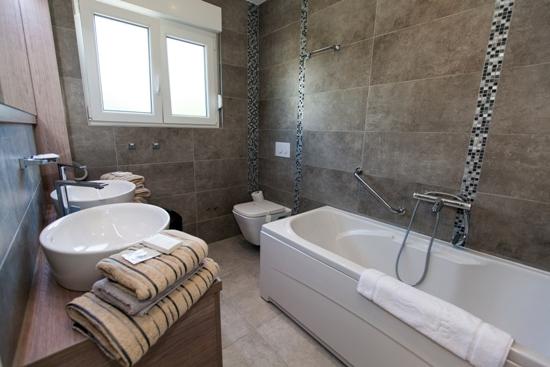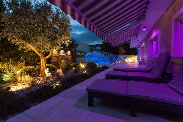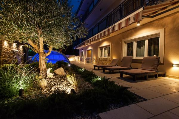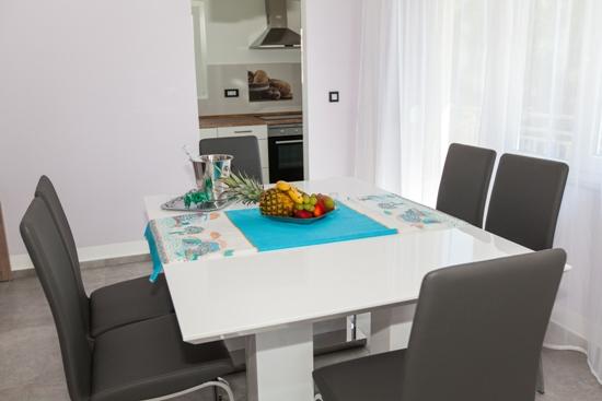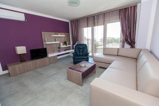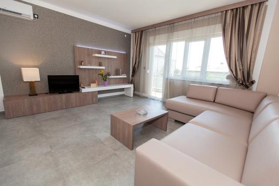 Turistskat er ikke inkluderet i prisen.Miljø hjem beriget med en stor have og en stor swimmingpool med et system til opvarmning og køling, hydro massage, luft massagedyser og modstrøm svømning, solbadning med liggestole, og plads til socialt samvær. I haven en legeplads for børn med en gynge og rutschebane, hvor anti-stress tilføjet substrat. Gæsterne meget rolige inverter split enheder. Gæsterne kan bruge den gratis internetadgang (WiFi) og satellit-tv. Lejligheder til 4 og 5 er en parkeringsplads Hjælp med at organisere ture ind og ud af regionen som Plitvice søer, Krk, Rab, Istria. Den grundlæggende antal senge - 2 ekstra senge 2 ekstra 15 euro per seng / nat. Børn under et år bor gratis.