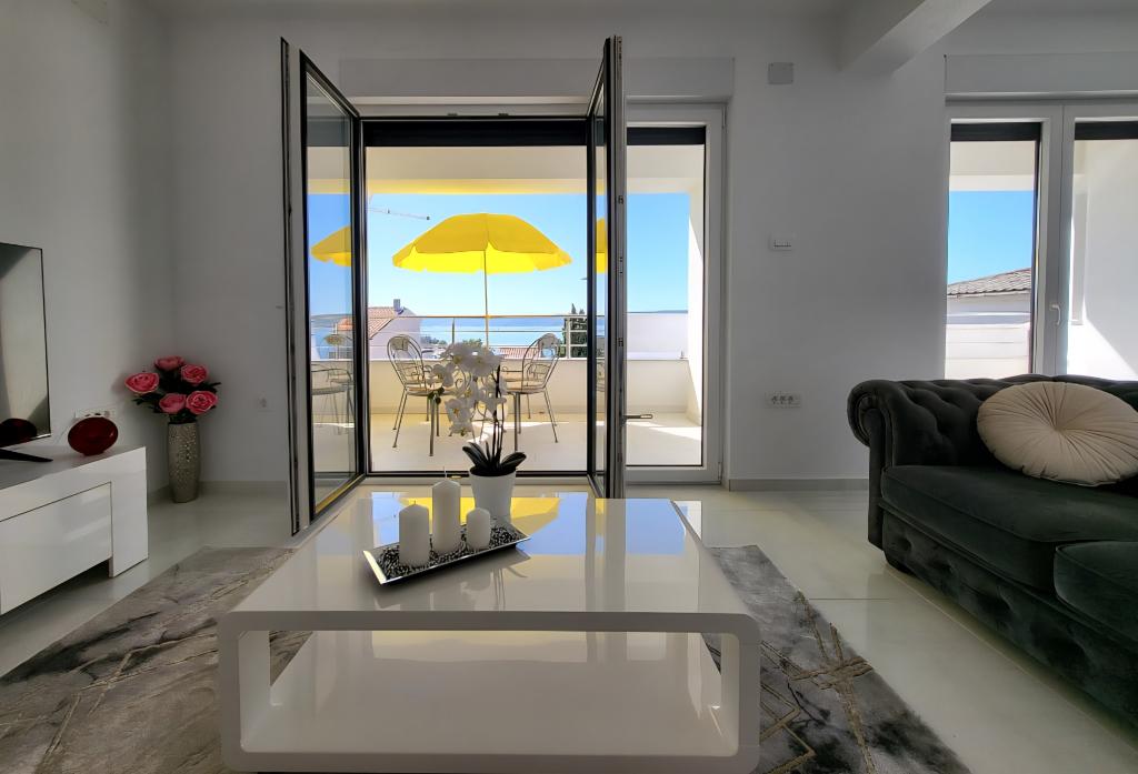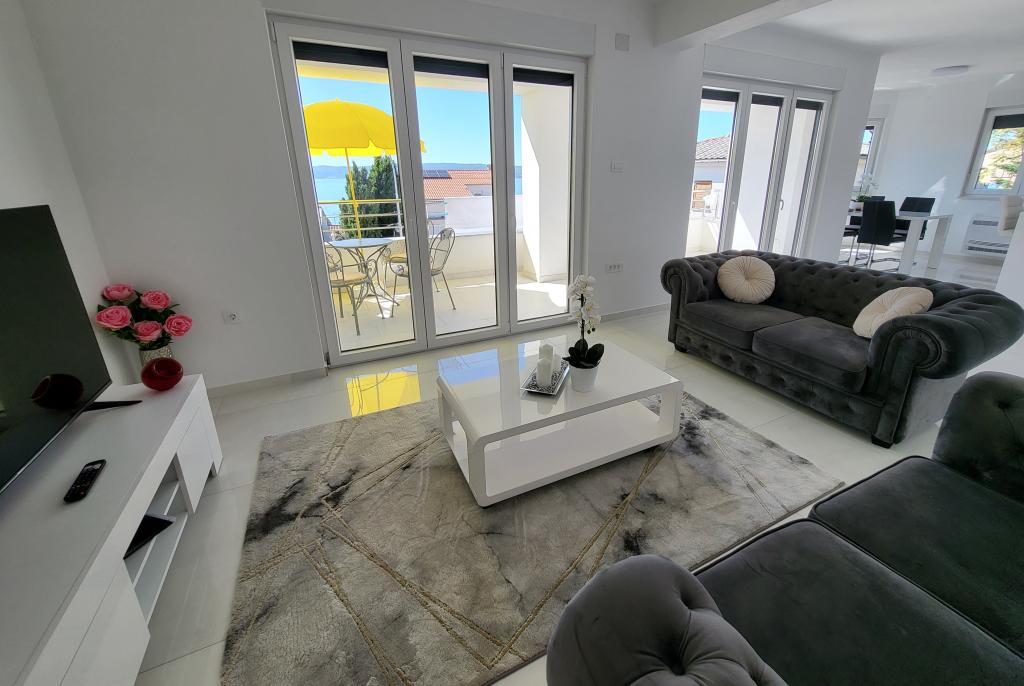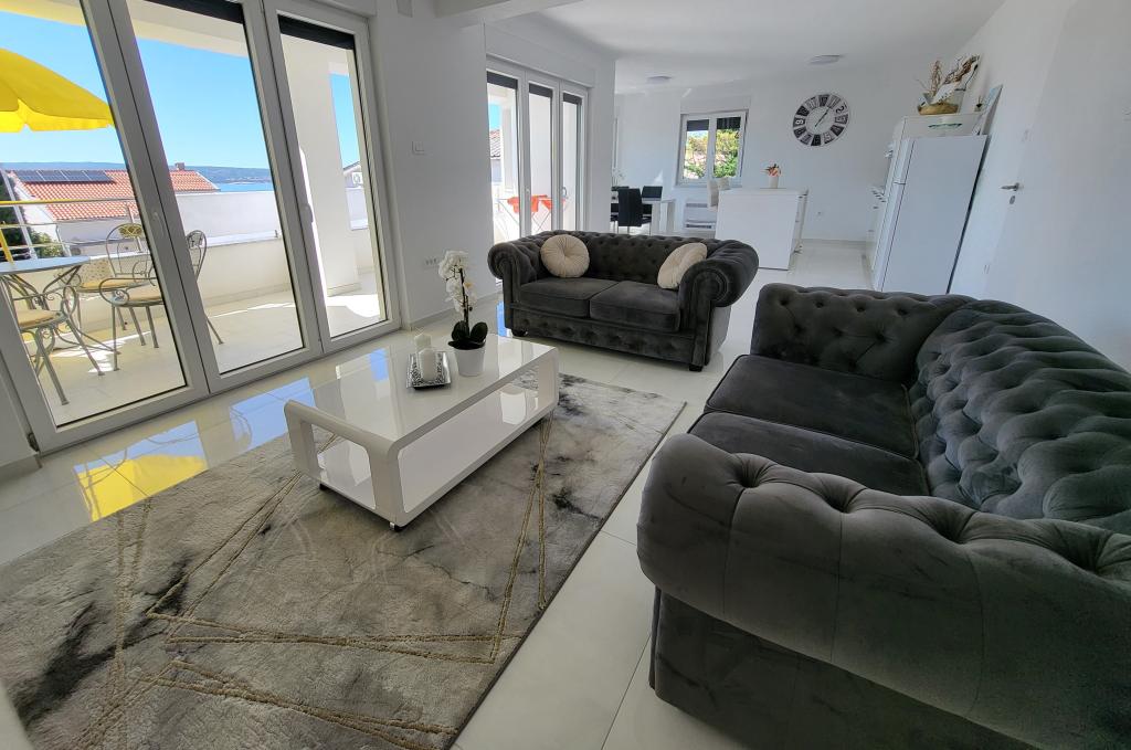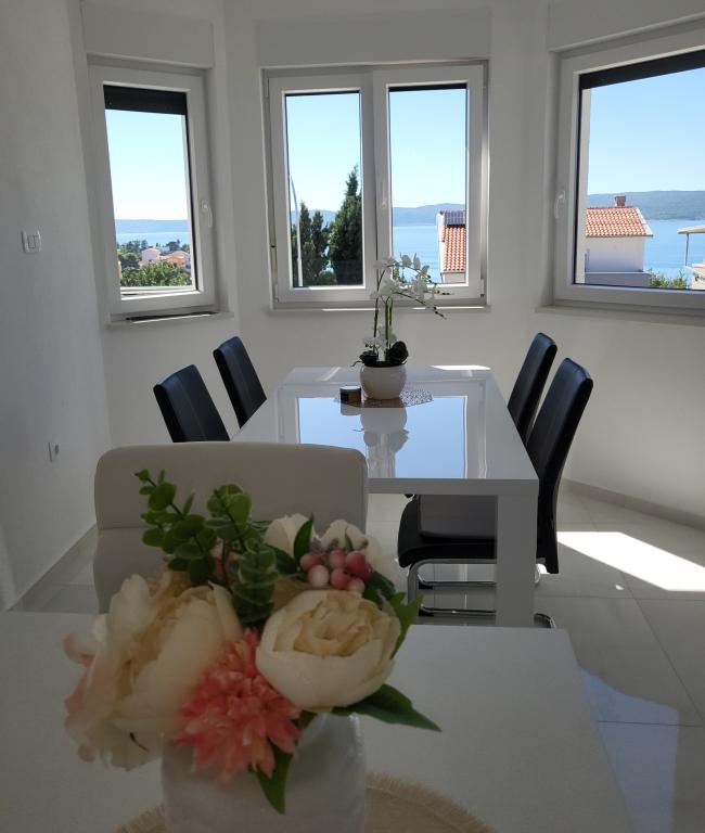 Nye lejligheder i centrum af Selce, en lille og malerisk by ved Adriaterhavskysten, meget tæt på Crikvenica - ligger i den øvre stueetage og på 1. sal i huset. De er rummelige og luftige. Begge lejligheder består af to soveværelser, badeværelse, entré, "åbent" køkken, spisestue og stue samt balkon. De har en smuk udsigt over havet og stranden. Lejlighederne ligger 2 minutters gang fra byens centrum, butikker, promenade, strand, restauranter og caféer. Parkering er i husets gårdhave. Aircondition, wi-fi og parkering er inkluderet i indkvarteringsprisen. Prisen inkluderer turistskat (opholdsskat) og rengøring af lejligheden. KÆLEDYR ER IKKE TILLADT.