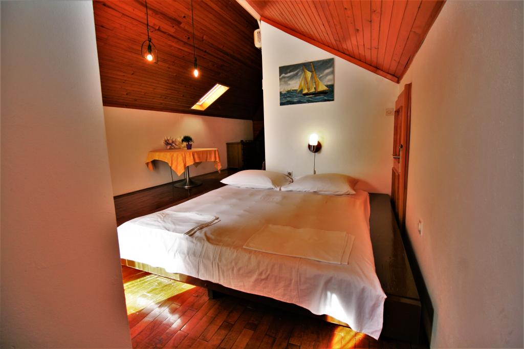 Rummelig og udstyret lejlighed med to soveværelser, 2 badeværelser, 2 terrasser og køkken i en bygning beliggende 100 m fra stranden og centrum af Selce.