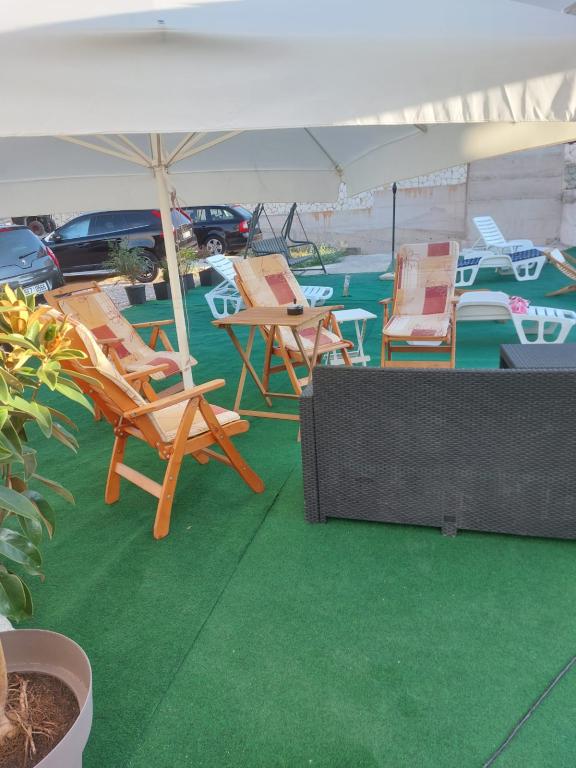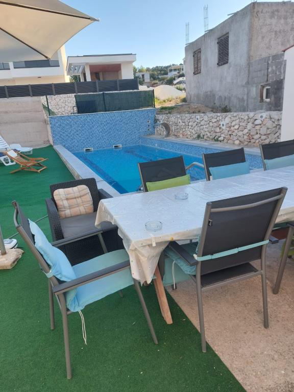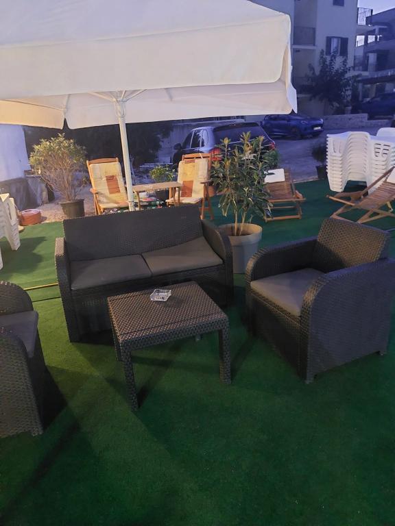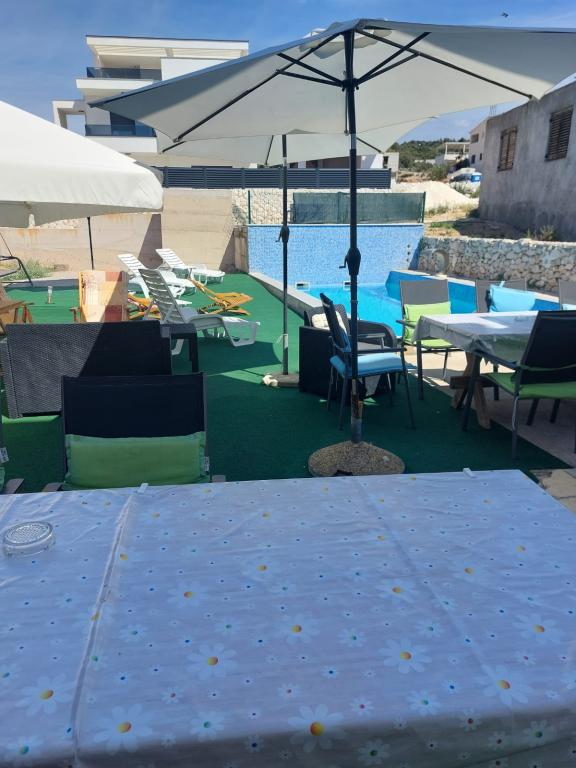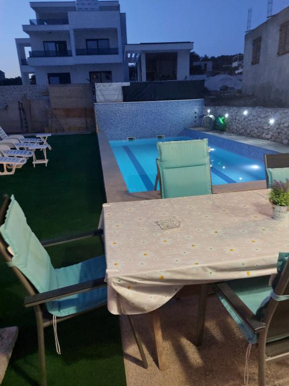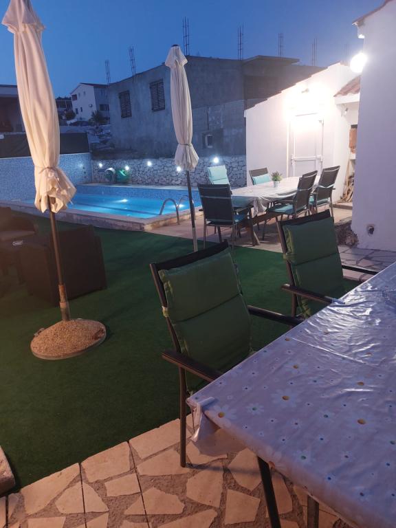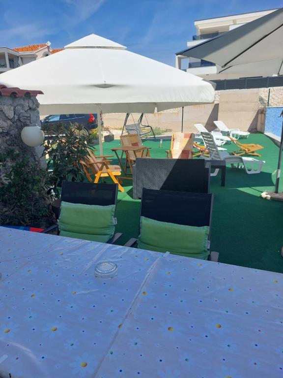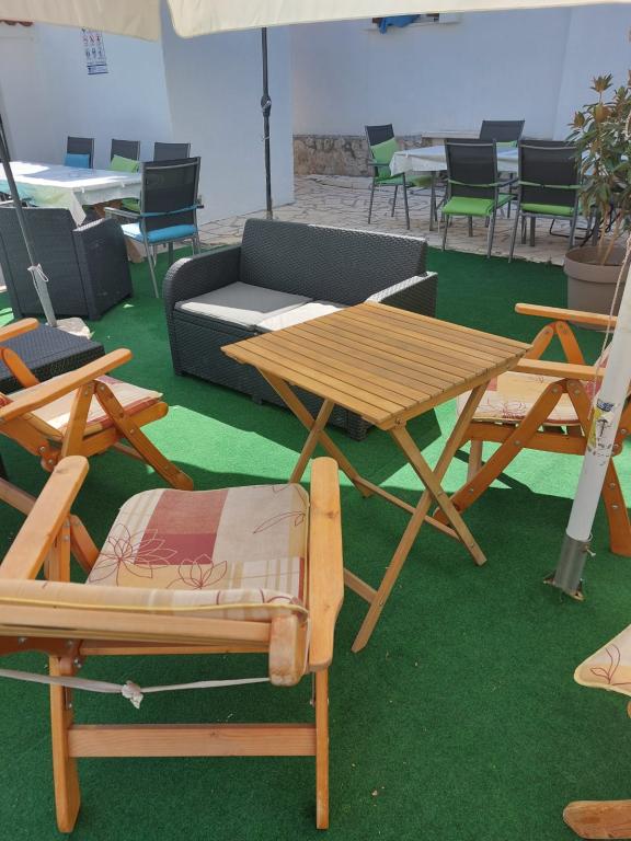 Roligt og roligt kvarter. Solsenge, paraplyer, kajakker til rådighed på stranden og alt dette til prisen. I haven er der en swimmingpool og en grillplads. Parkering. A4 værelser rummelige med en stor balkon (vi tilbragte den første uge der), A2 + 2 (anden uge ophold) lidt mindre, rene værelser. Ejere nice, venlige, hjælpsomme. Nice familie 2 + 2 (børn i alderen 7 og 11). Til butikken og bar 2 min. (kun butik og bar i landsbyen. Til stranden maksimalt 1 minut. Vand på dette sted meget rent. Jeg anbefaler Dinko lejlighed til alle.